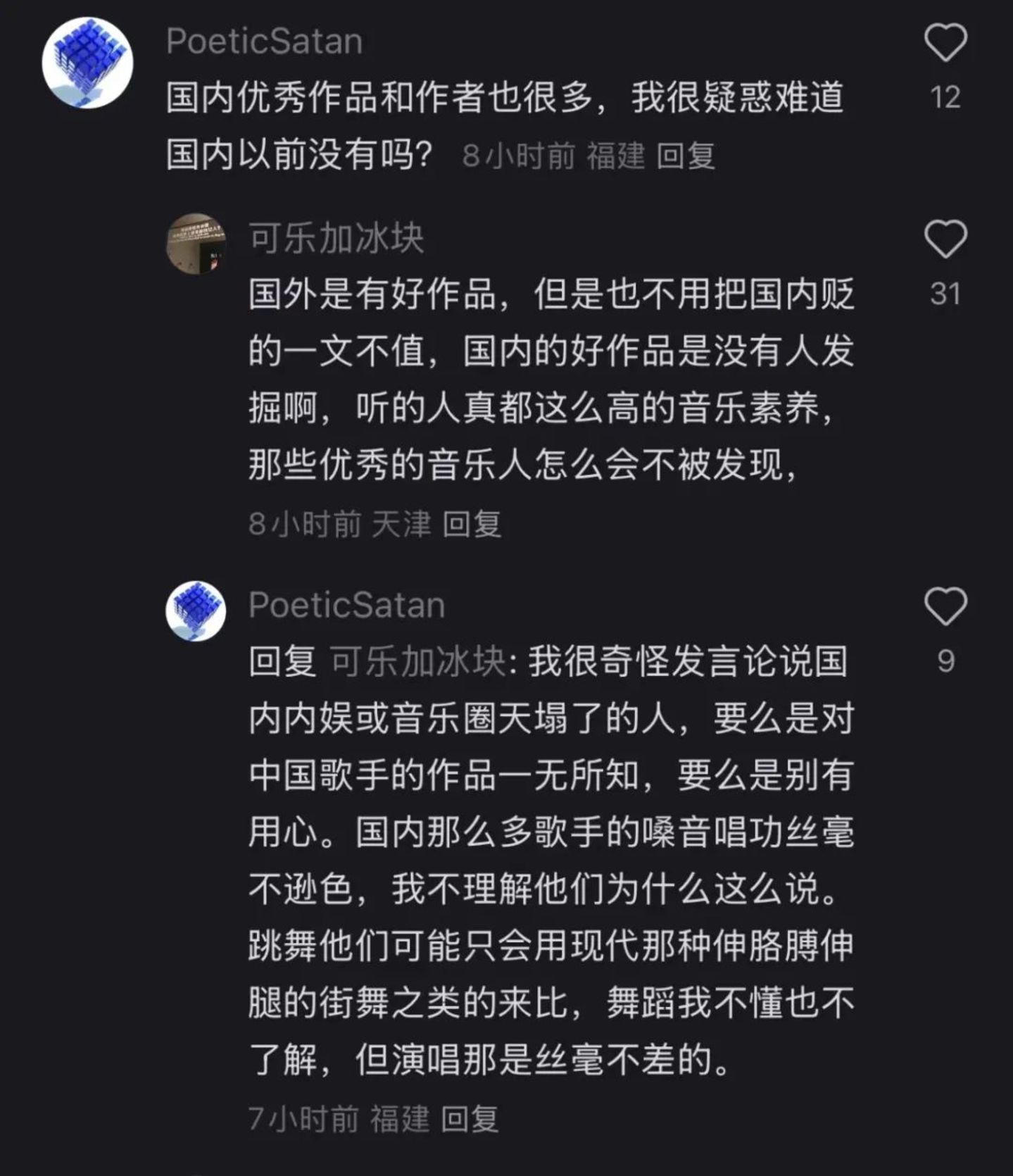 但随着海外音乐人蜂拥而至,这种“文化输入”也显现出不可忽视的双重性。平台的融合属性,确实拉近了音乐人与听众的心理距离,将个人品牌延展至更广阔的文化空间,但这股“难民潮”也对国内的音乐生态形成了的“鲶鱼效应”。