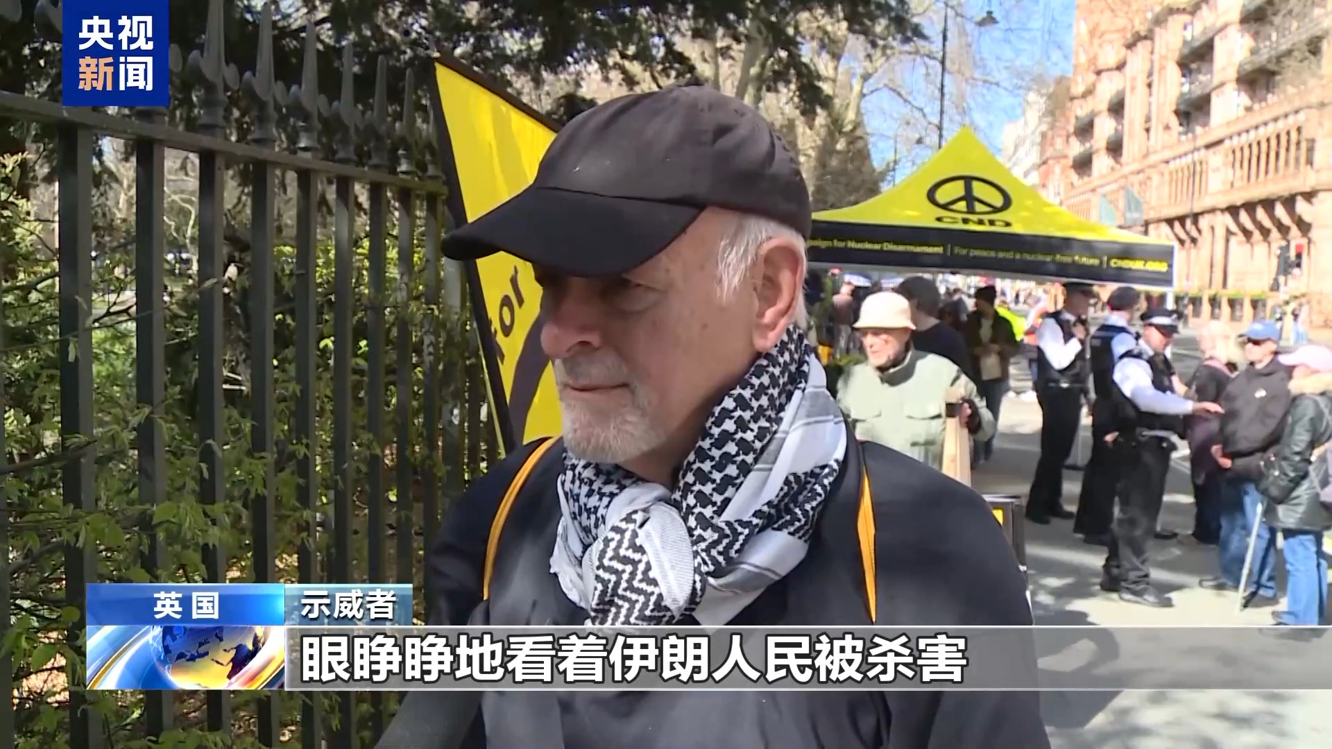 总台记者 杨兢兢:英国当地民众正在伦敦市中心举行集会,抗议美国和以色列对伊朗进行军事行动,表达对中东局势的担忧。不少参与者手持标语,高喊反战口号,呼吁国际社会推动停火与和平谈判。