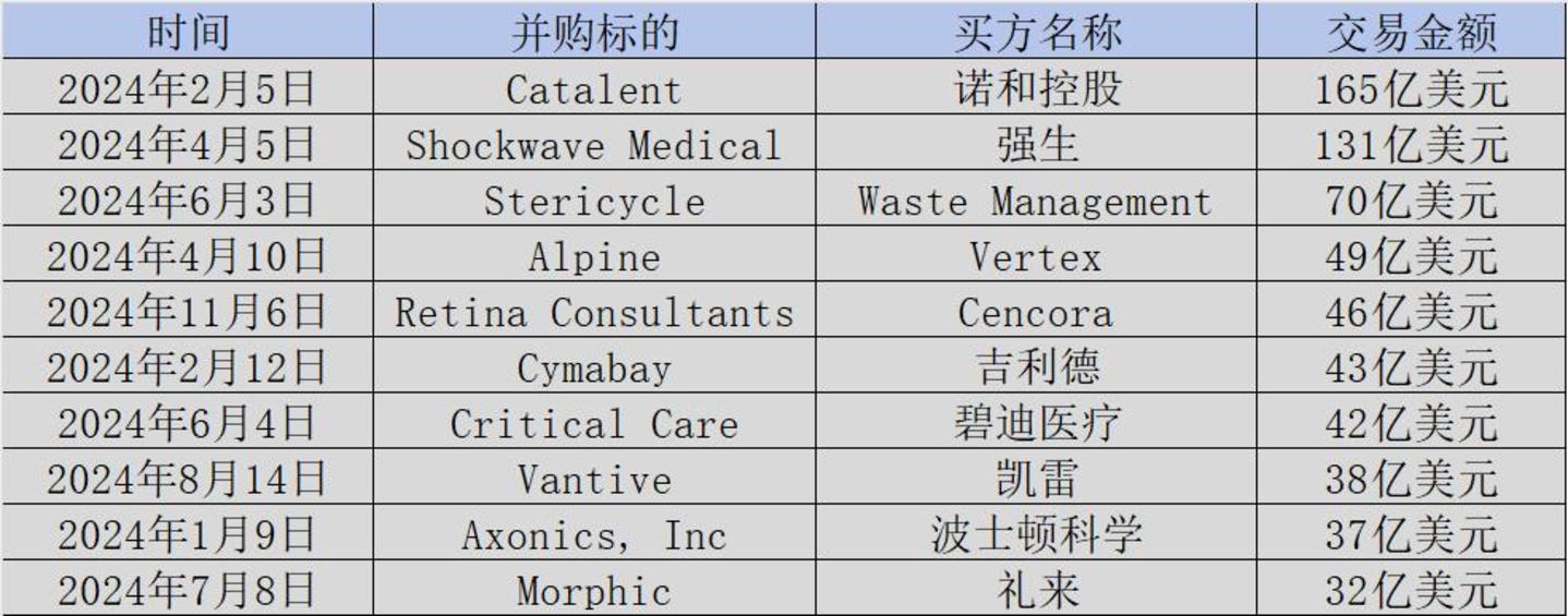 图:2024年全球主要医药并购交易一览,来源:锦缎研究院