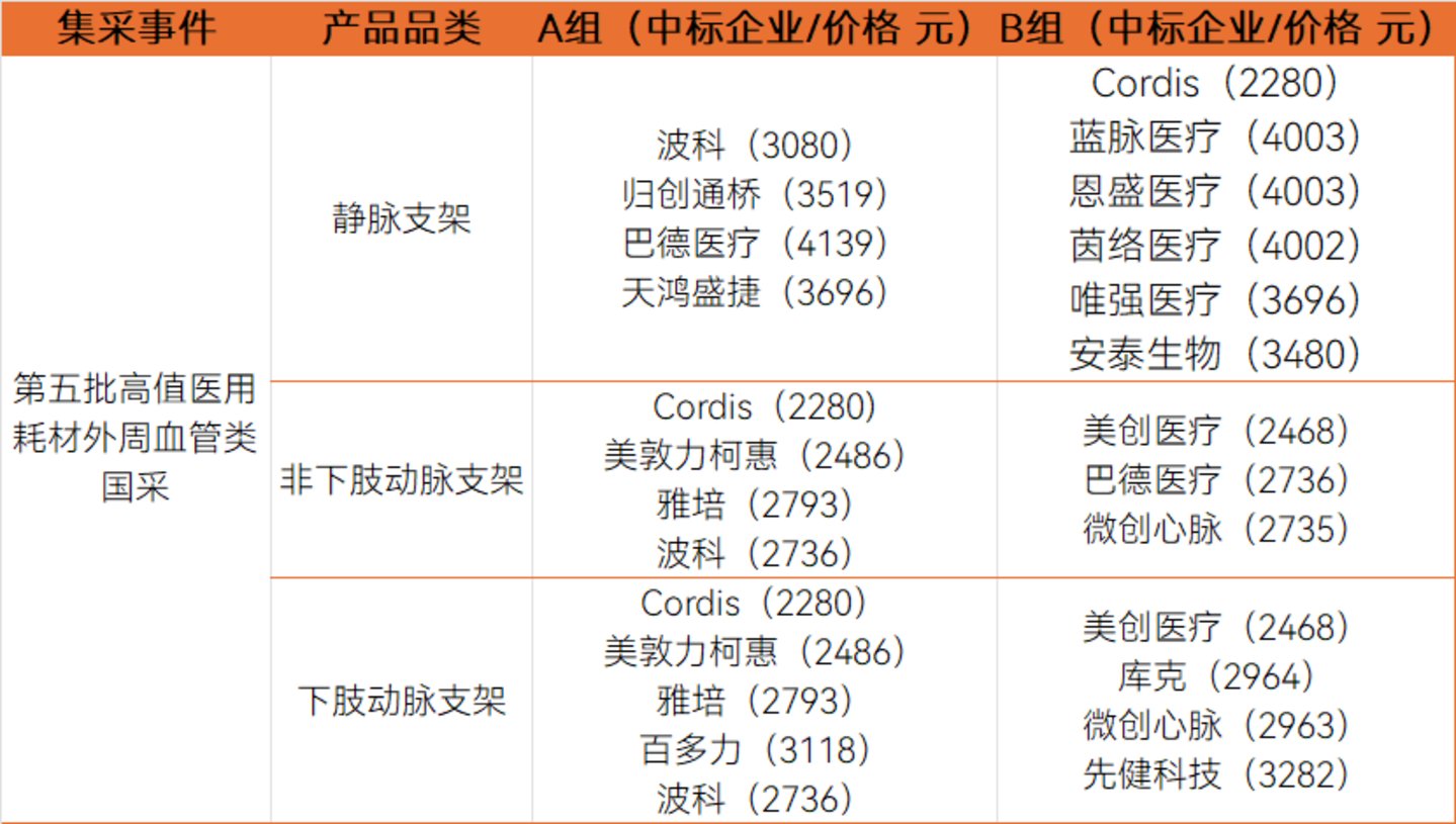 在集采中,外资企业降价超预期。在外周介入集采过程中,大部分跨国企业积极主动地参与其中,且在集采价格上展现出更具竞争力的优势。以Cordis为例,在国家第五批耗材采购中,Cordis动脉支架报出最低价2280元,这一中标价格比多家国产企业报价还低。