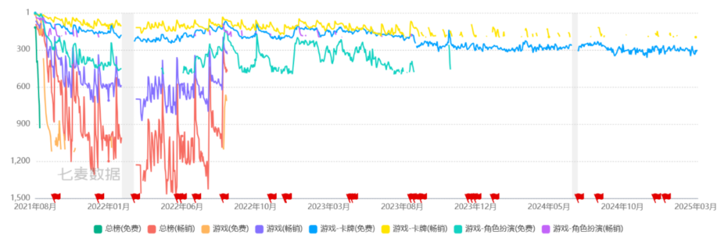 这一切,使得本应作为鬼脸业务基本盘的《灵魂潮汐》走向崩溃,七麦数据显示,游戏一周年后,《灵魂潮汐》就已在畅销榜、免费榜上销声匿迹,营收自然也日薄西山。