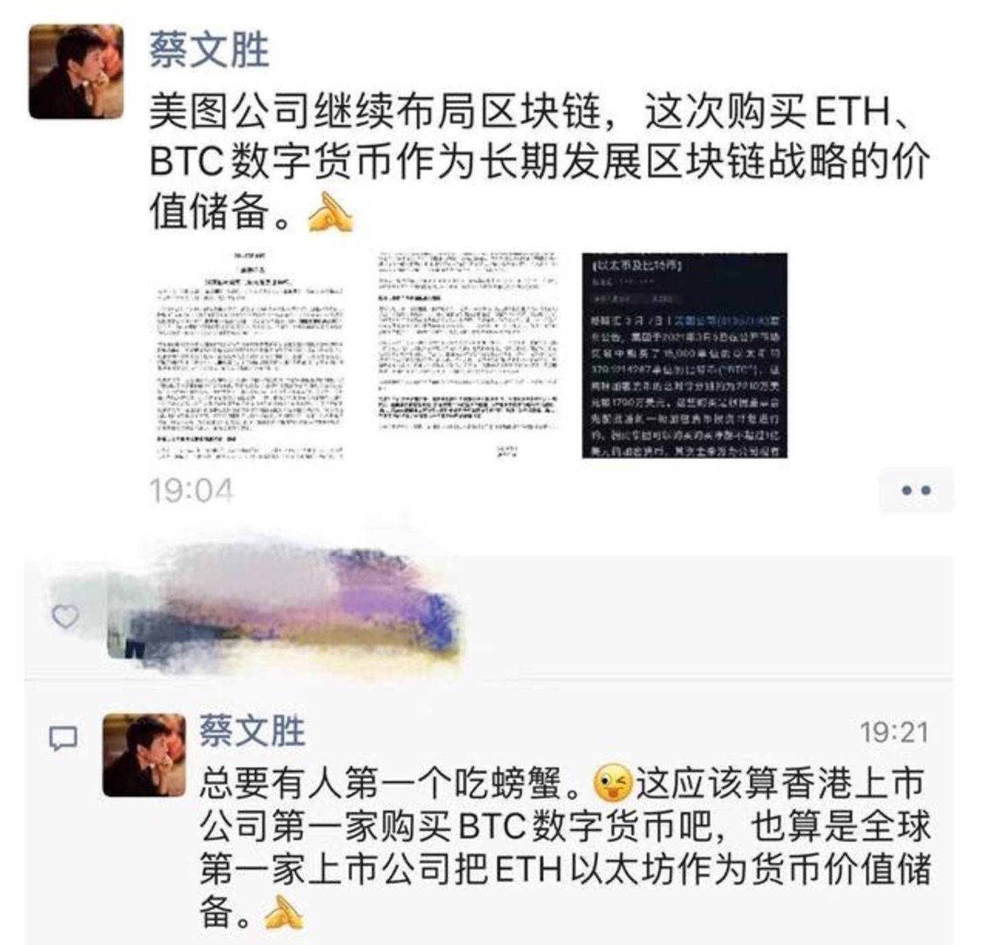 2021 年,美图终于耗资约 4000 万美元购入以太币以及比特币,是港股第一家购入数字货币的公司。蔡文胜当时说,美图继续布局区块链,这次购买数字货币作为美图长期发展区块链战略的价值储备。