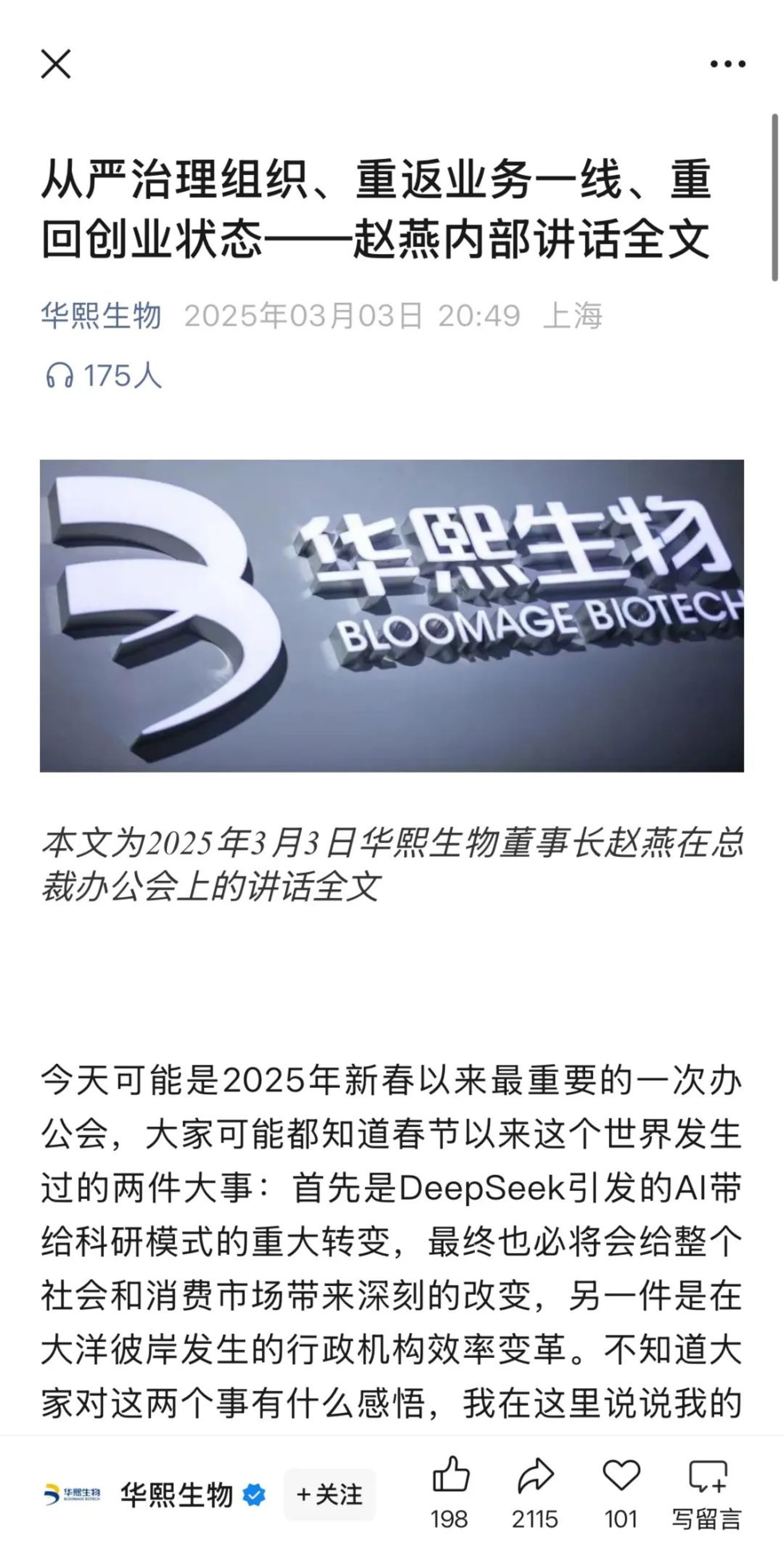 3月3日,董事长赵燕在总裁办公会上的讲话,将华熙生物推上了风口浪尖。