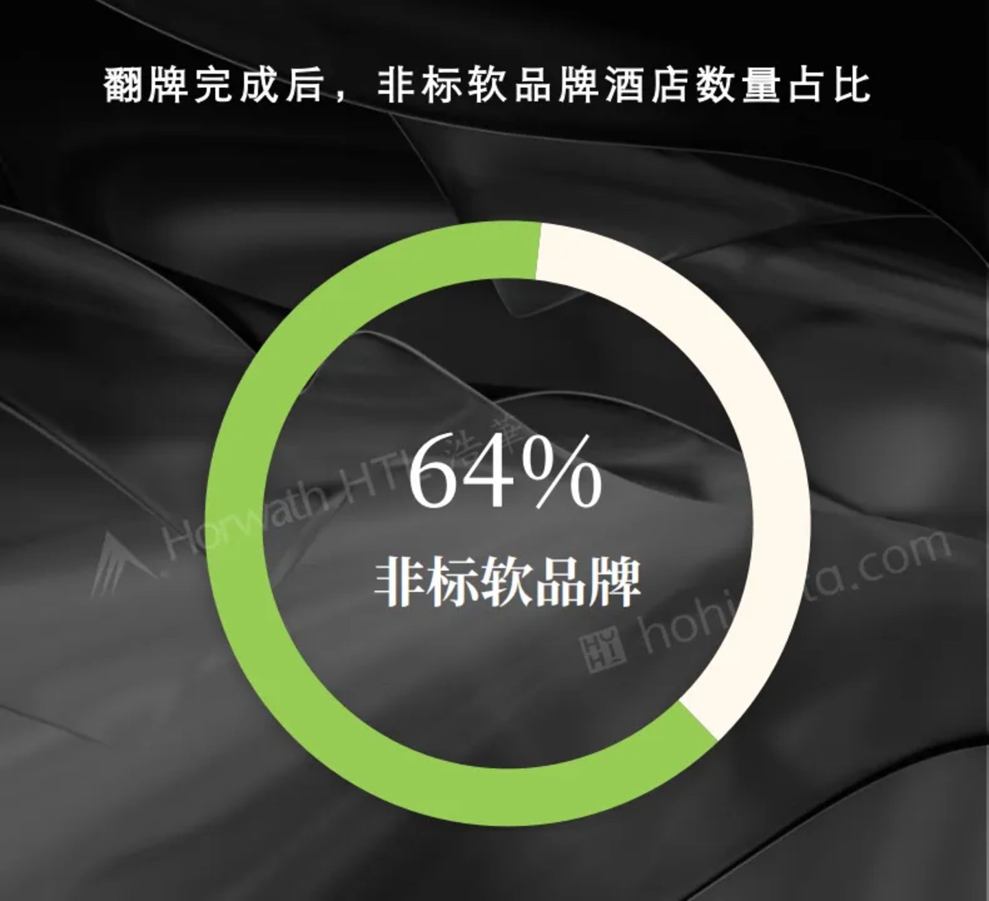 另外,在酒店翻牌完成后,超过64%的酒店品牌为非标软品牌。该类产品对物业硬件要求较低,翻新改造难度⼤幅降低。