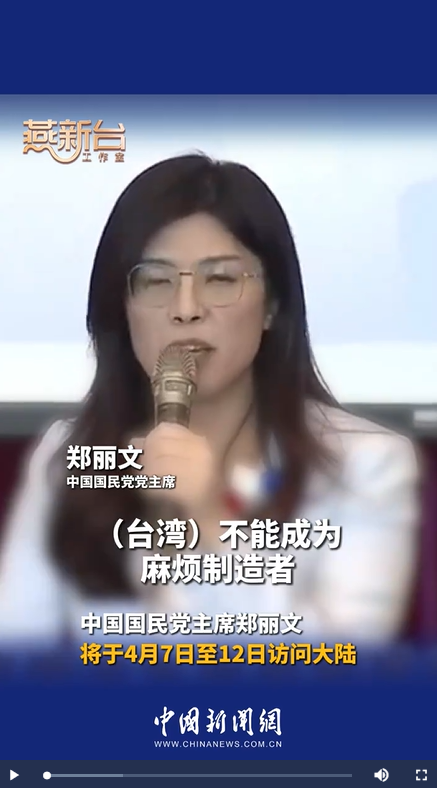 中国国民党主席郑丽文将于4月7日至12日应邀访问大陆。中新网“燕新台”工作室梳理早前报道发现,郑丽文当选国民党主席后,曾多次表达希望推动两岸交流、访问大陆的意愿。她表示,中国人就是我们的底气;两岸要立即恢复对话交流,唯一政治基础就是“九二共识”、反对“台独”。她认为,“台独”是一个“死胡同”,两岸要和平、要交流才是主流民意。(制作:燕新台 君言晚 常望涛 中新网“燕新台”工作室出品)