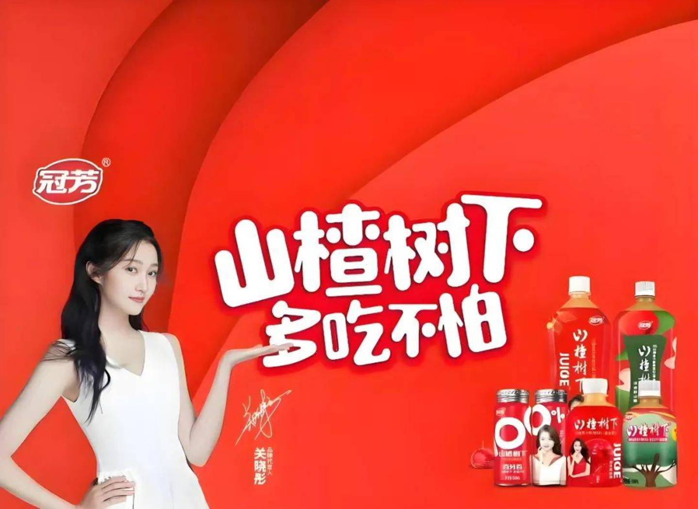 于是,冠芳也开始决定推出山楂果茶饮料。当时,周冬雨主演的电影《山楂树之恋》大火,公司提炼出了“山楂树下”的产品名称。因为山楂“化饮食,消肉积”的功效深入人心,公司又提出了“山楂树下,多吃不怕”的广告词。