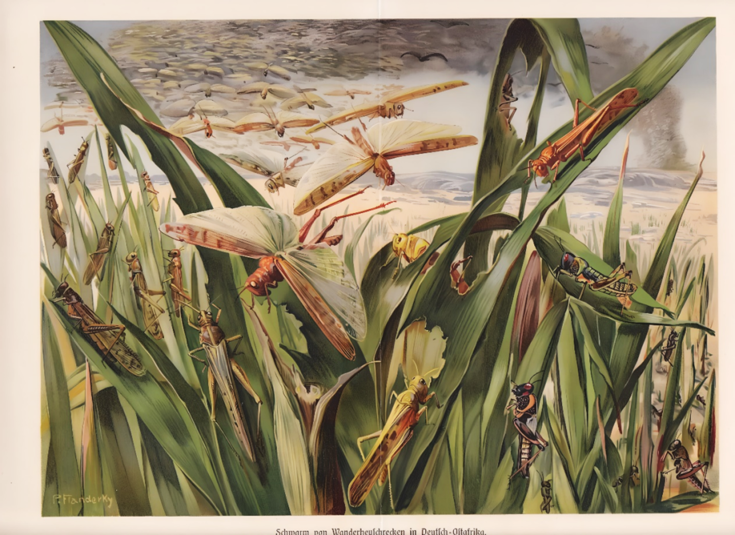 ▷《动物生活》中 20 世纪 10 年代的蝗虫云。