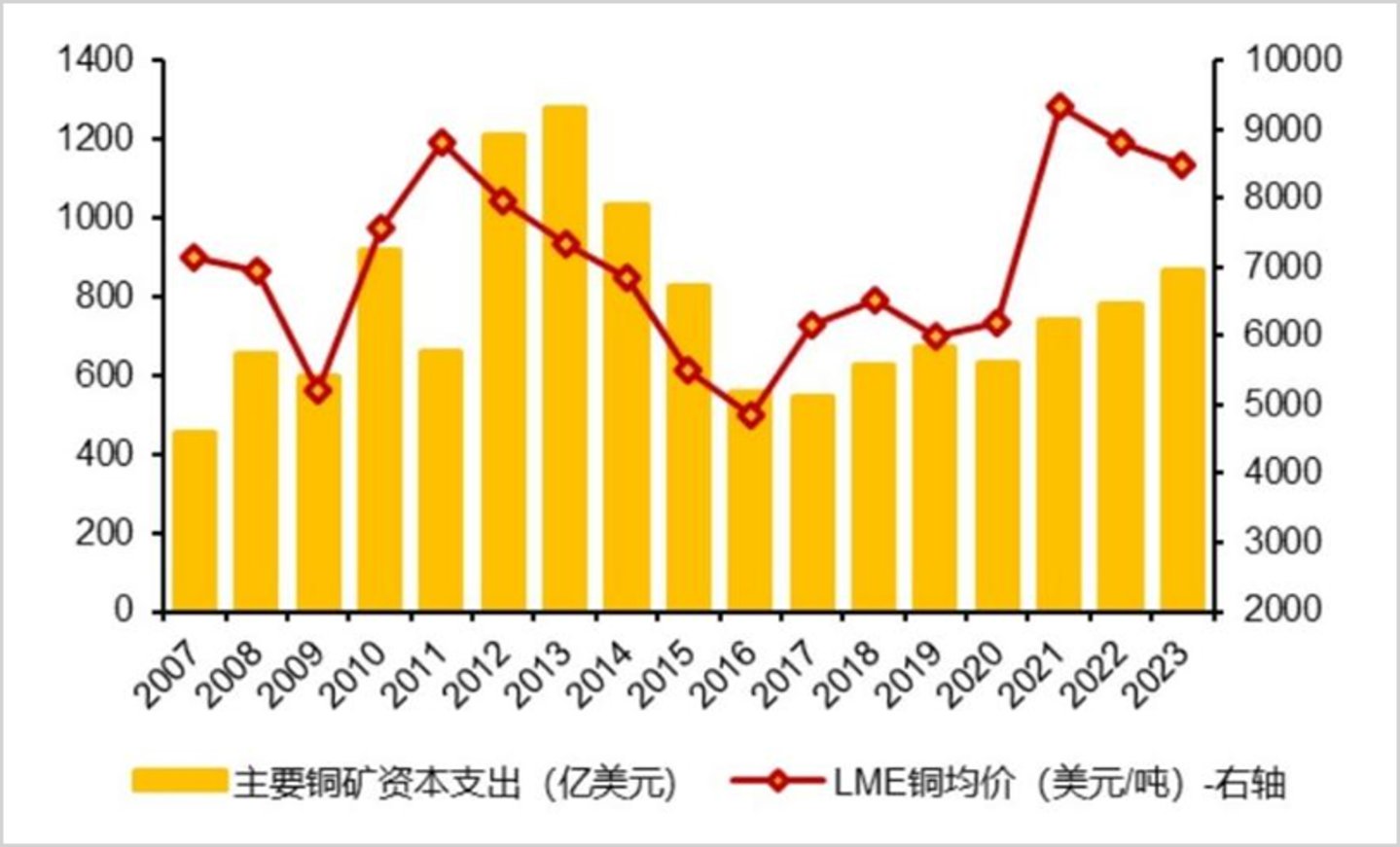 一面是资本开支下降,一面是成本中枢抬高,两重因素叠加必然会导致铜矿放量的规模和速度被压缩。