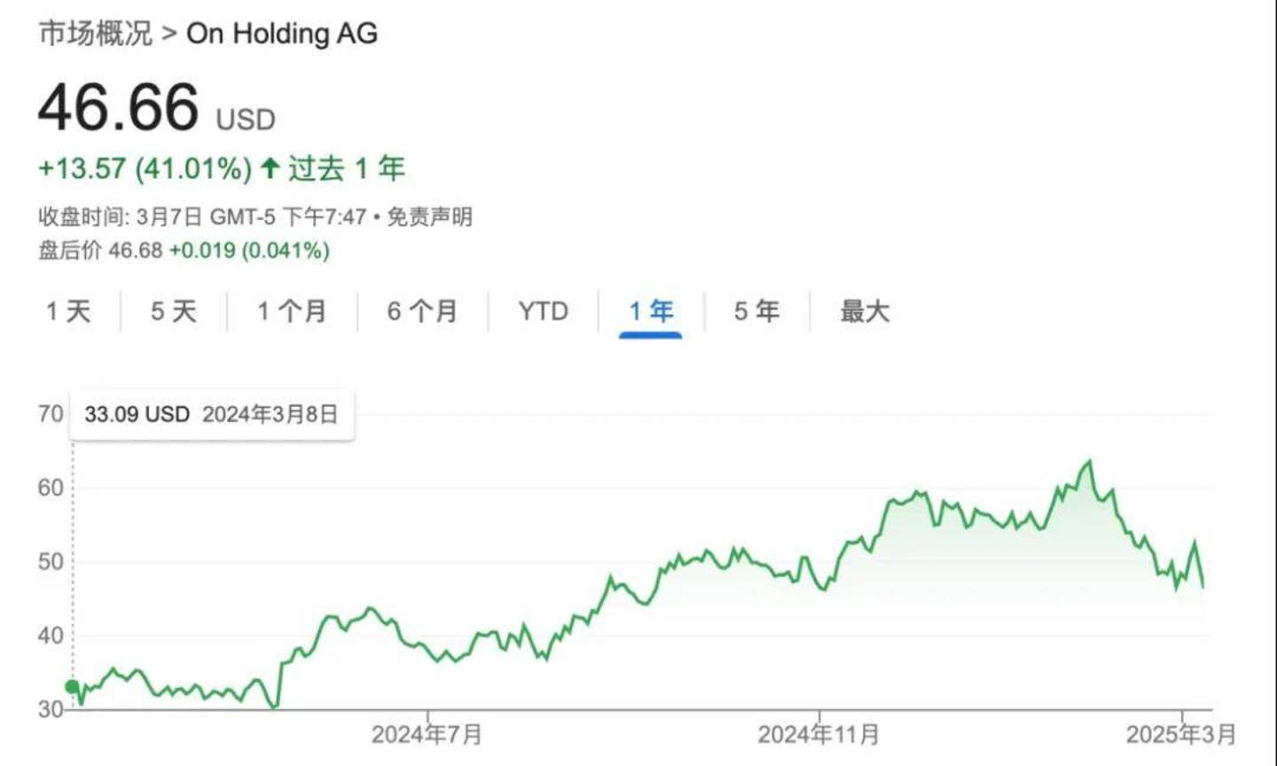 受财报业绩的刺激,截至3月7日,昂跑美股价格上升至46.66美元/股。今年1月31日,昂跑股价曾一度升至约64美元/股,可随后就进入了下滑期,此次财报发布后,其股价再次被拉高。