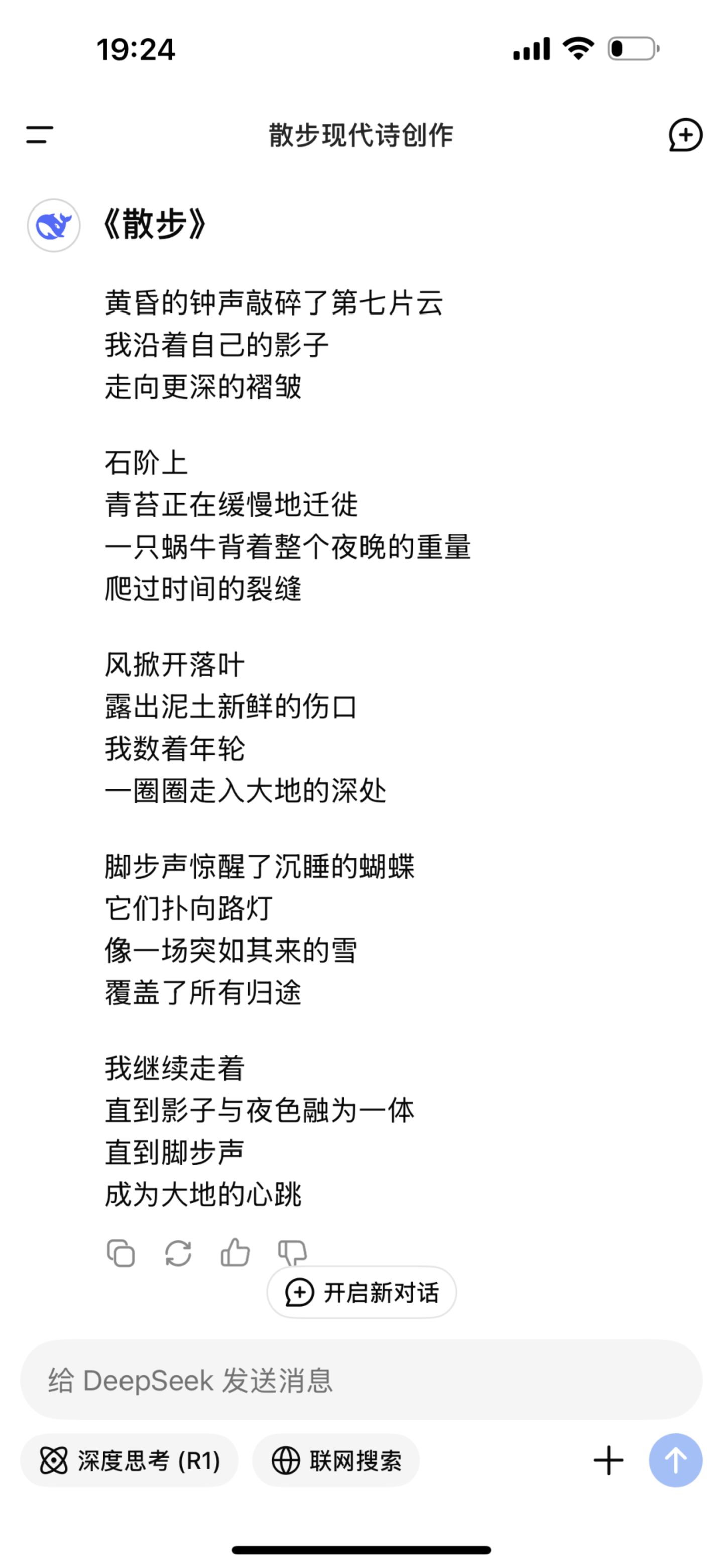相较其他大模型,DeepSeek回答的网感更好、幽默感更强,并且文笔更加优美诗意。这些能力导致在同一个问题下,DeepSeek回答的“真人感”更强。从而导致用户从兴趣上更愿意与其对话,并且更愿意将对话结果在社交媒体上分享出来。