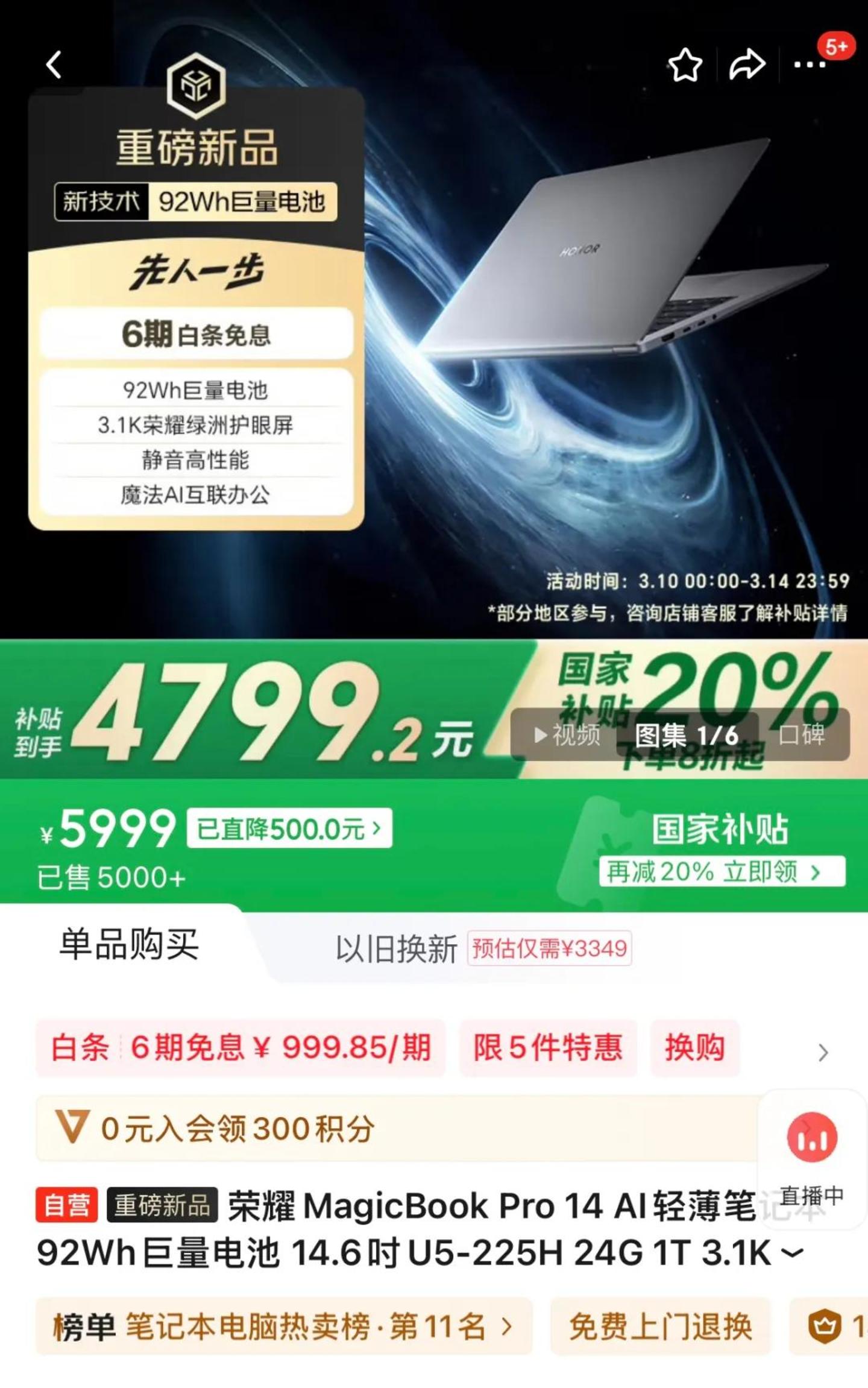 荣耀MagicBook Pro 14国补后定价4799元起,注重从硬件调校,到人机交互,再到跨端生态的全面 AI 重构,尤其是 HONOR Turbo X 技术和 YOYO 助理 2.0 的深度应用。YOYO助理 2.0接入大模型之后,端侧支持智能搜索、阅览、AI PPT等创作、一句话交互等功能。