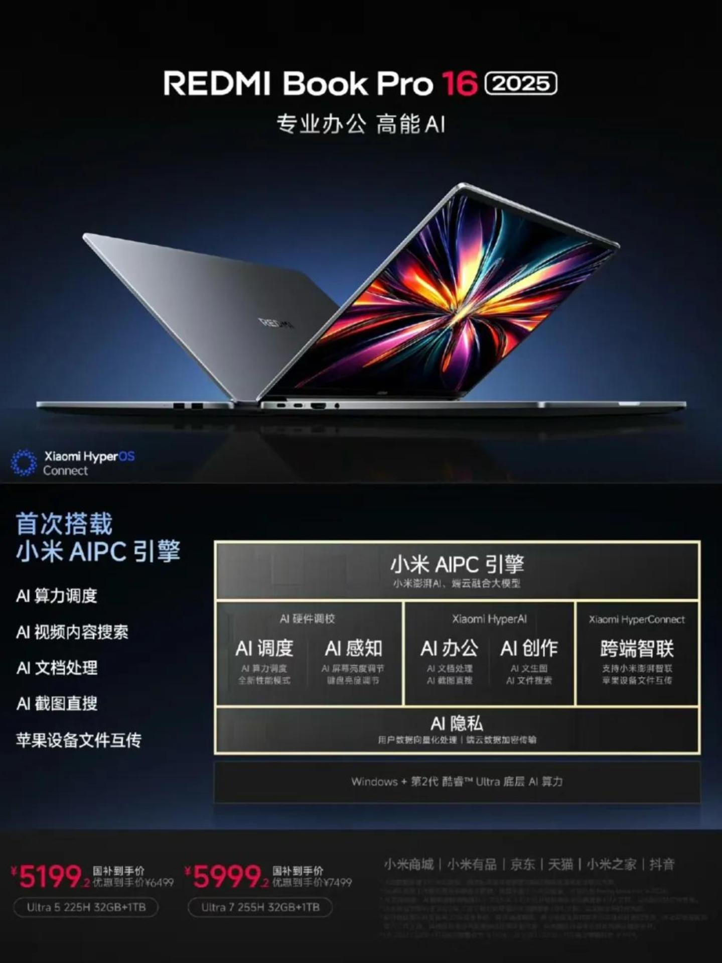 同日发布的小米首款AI PC新品 REDMI Book Pro 2025,虽显得低调,但也值得留意。