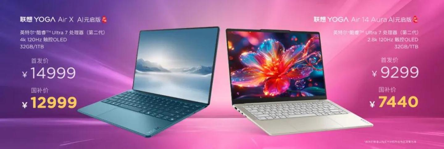 联想YOGA AI PC元启新品,共包含6款产品,国补后定价最低7000元起,最高超1.5万元,既覆盖了消费级市场,更瞄准了垂直生产力场景,冲刺企业级市场。
