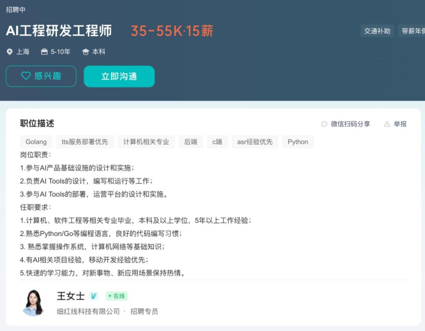 细红线科技从AR领域转向AI领域,也并不见得一帆风顺。据“趣解商业”了解,目前细红线科技仍在大力招聘AI搜索工程师、AI工程研发工程师等人才,主要任务就是搭建新一代的AI搜索引擎,以及参与AI产品基础设施的设计和实施等。