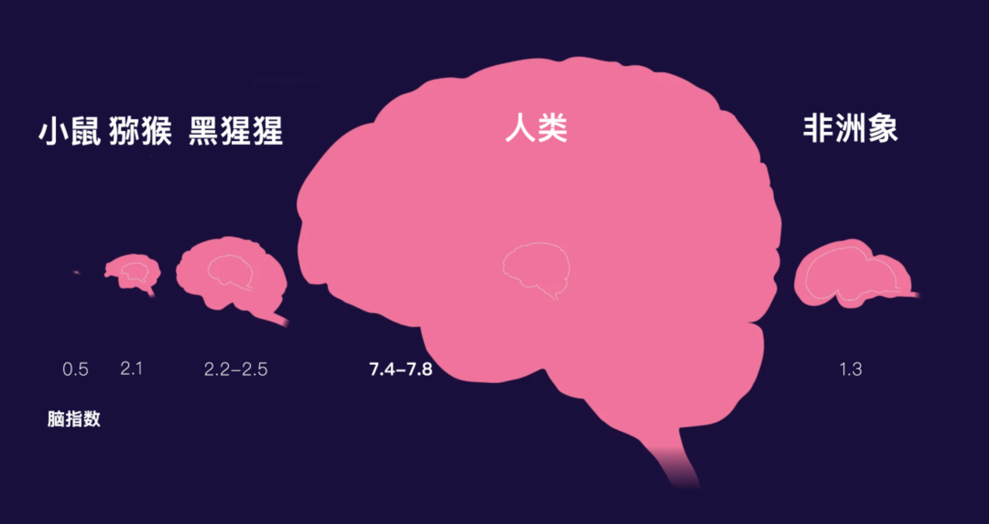 在大多数动物中,大脑尺寸与身体尺寸密切相关,但人类打破了这一规律。考虑到我们身体的尺寸,大脑的体积比预期的要大得多。