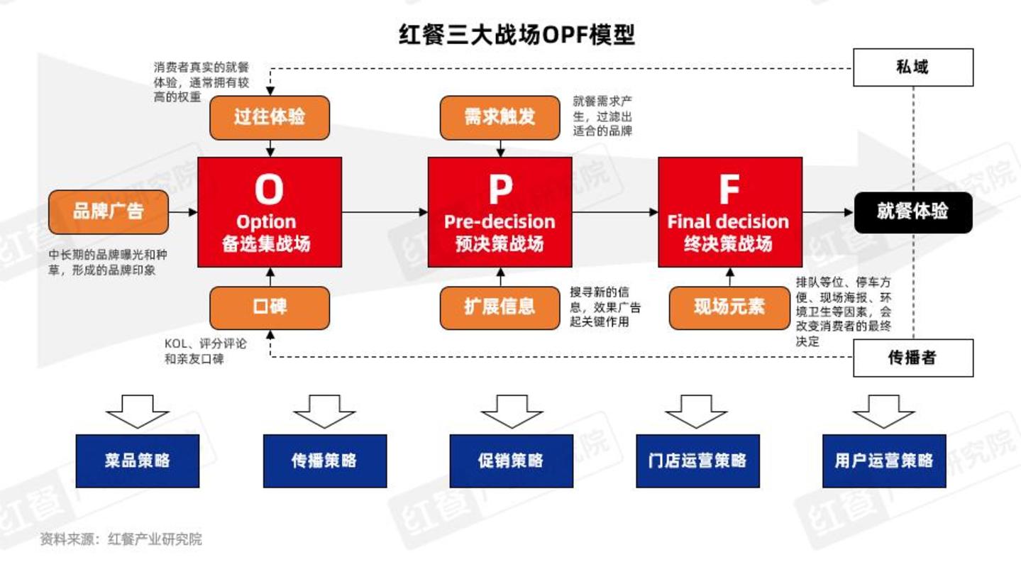此外,洞察消费者决策链也是十分关键的一环,如今餐饮消费者往往决策前置,备选集战场和预决策战场的重要性非常高,而且不同战场的消费者触达、运营方式、影响因素差别较大,因此需要根据具体消费者决策链情况建立起完整的传播运营体系才能更好地在三大战争的竞争中获得优势。