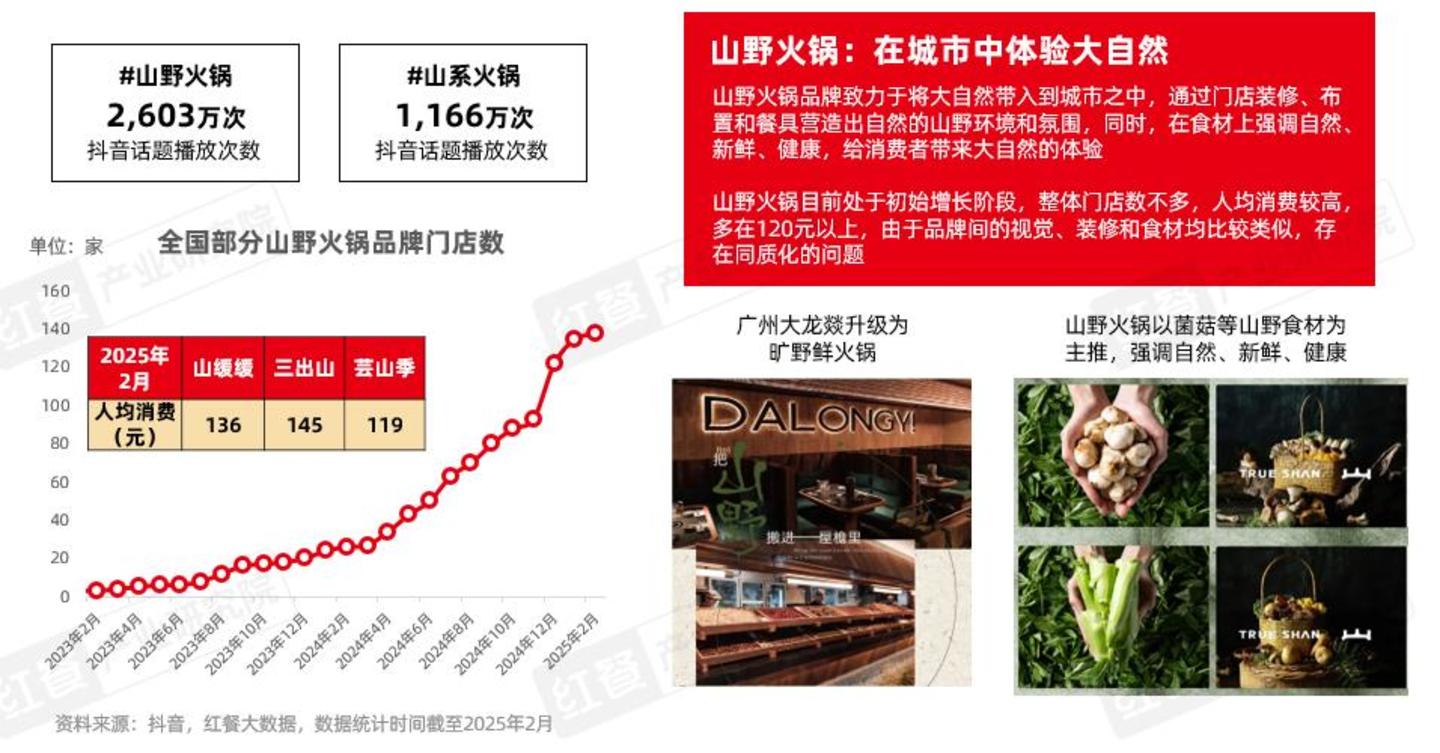 山野火锅也是2024年比较火热的赛道之一,山野火锅强调自然、新鲜、健康,通过主推菌菇等山野食材,配合山野风的装修和布置,让消费者在城市里就能感受到大自然的氛围。