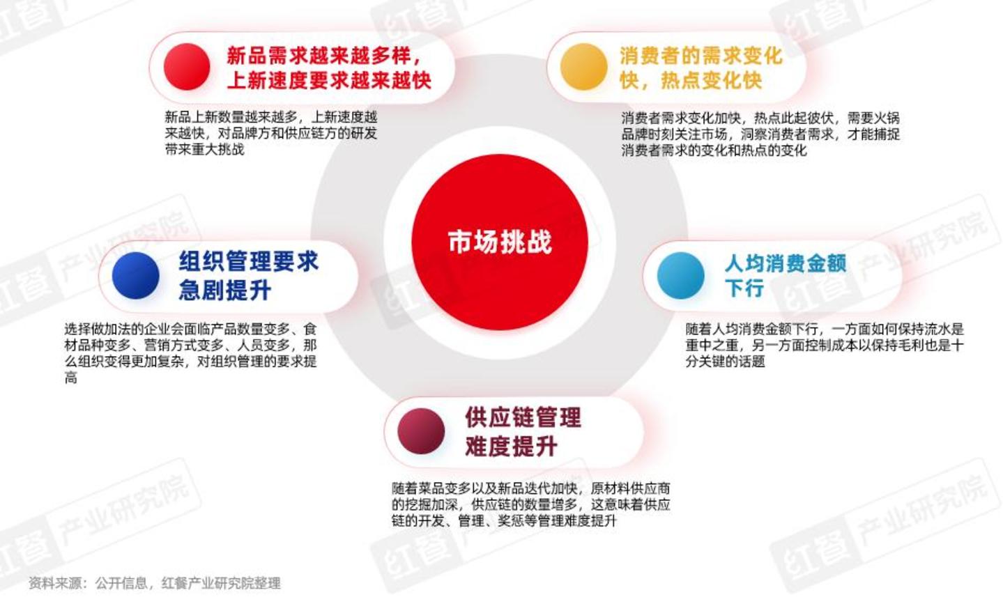 随着消费者需求变化越来越快、热点变化越来越快以及火锅品牌上新速度加快,市场带来的挑战越来越大,再加上人均消费金额下降带来的压力越来越大,对于企业内部组织管理以及外部供应链的管理要求越来越高。