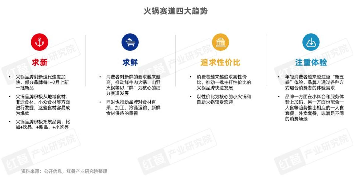 火锅赛道呈现出、求新、求鲜、主打性价比、重视体验等趋势,众多火锅品牌围绕这些趋势不断推陈出新,为赛道带来了蓬勃的生机。