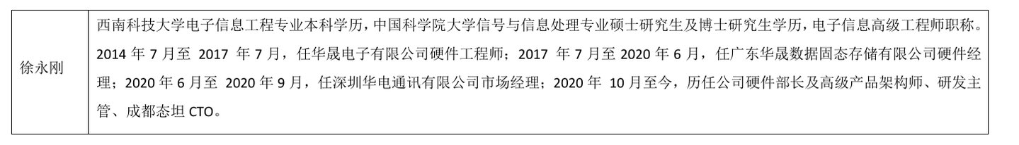 由于公司申请了信息豁免披露,并未进一步公布技术团队资料。不过钛媒体APP注意到,在公司披露的2023年年报中,公司具备核心研发背景的并不多。具备15年经验的仅李振华一人,曾任富士康工程师、研祥智能工程师、天悦双胜电子来料加工厂研发经理。徐永刚、王灿两人则是2020年才入职佰维存储。