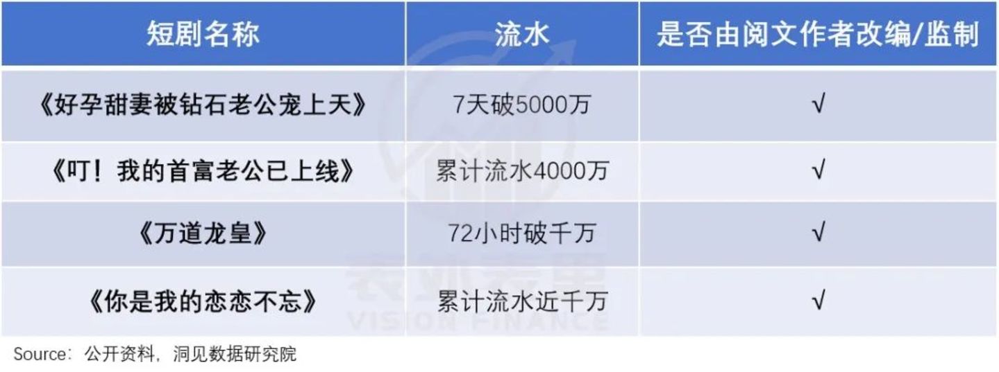 而在创作端,可以看到,去年阅文的IP可视化里,出现了不少由原著小说作者改编的短剧,且播放效果都不错。