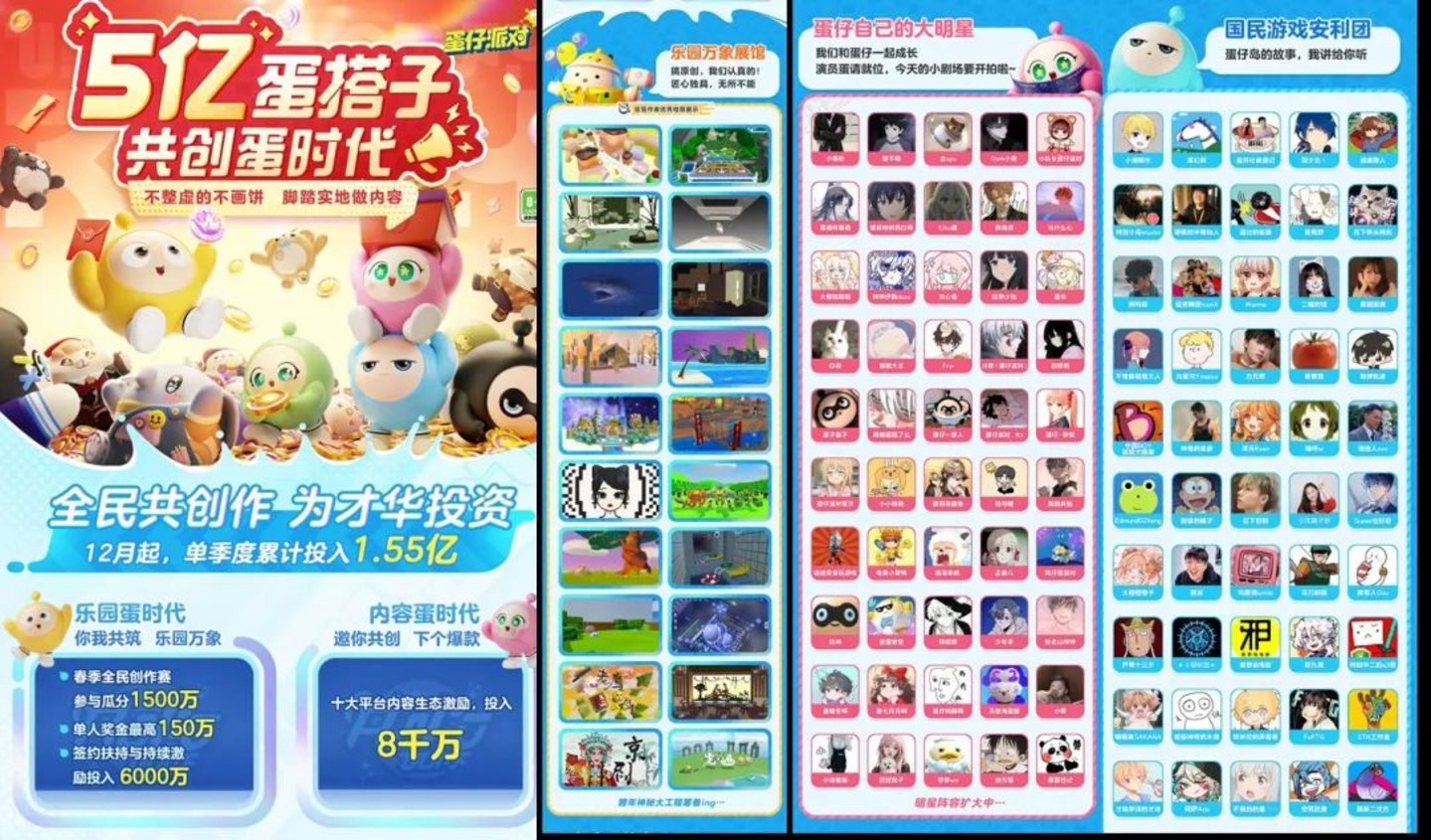UGC生态方面常常通过创作者激励计划,构建「玩家-创作者-玩家」的闭环生态。例如在2023年《蛋仔派对》推出「共创蛋时代」计划,在2年内投入5亿元用于激励创作者。