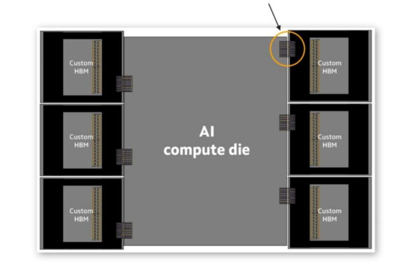 在性能提升方面,借由专属D2D(die-to-die)I/O,不仅能在定制化XPU中多装25%逻辑芯片,也可在运算芯片旁多安装33%cHBM存储器封装,增加处理器可用DRAM容量。预期可将存储器介面功耗降低70%。