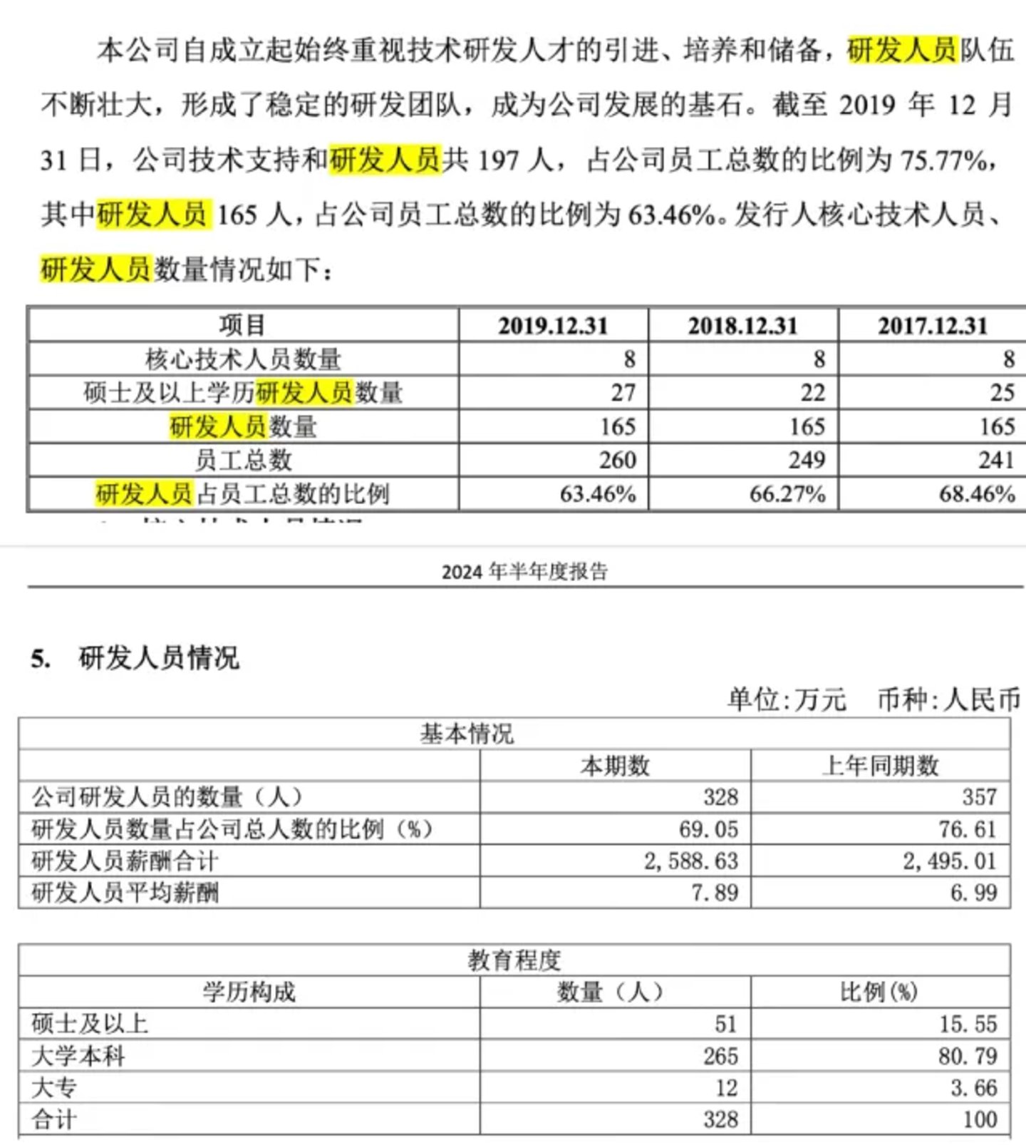 财富趋势上市前(2019年末)员工总数为260人,其中研发人员165人,历经上市约5年的发展,员工总数增加200人出头,研发增加163人。这样的人员变化趋势,也让“为持续人才引进预留充足办公空间”一说显得空洞苍白。