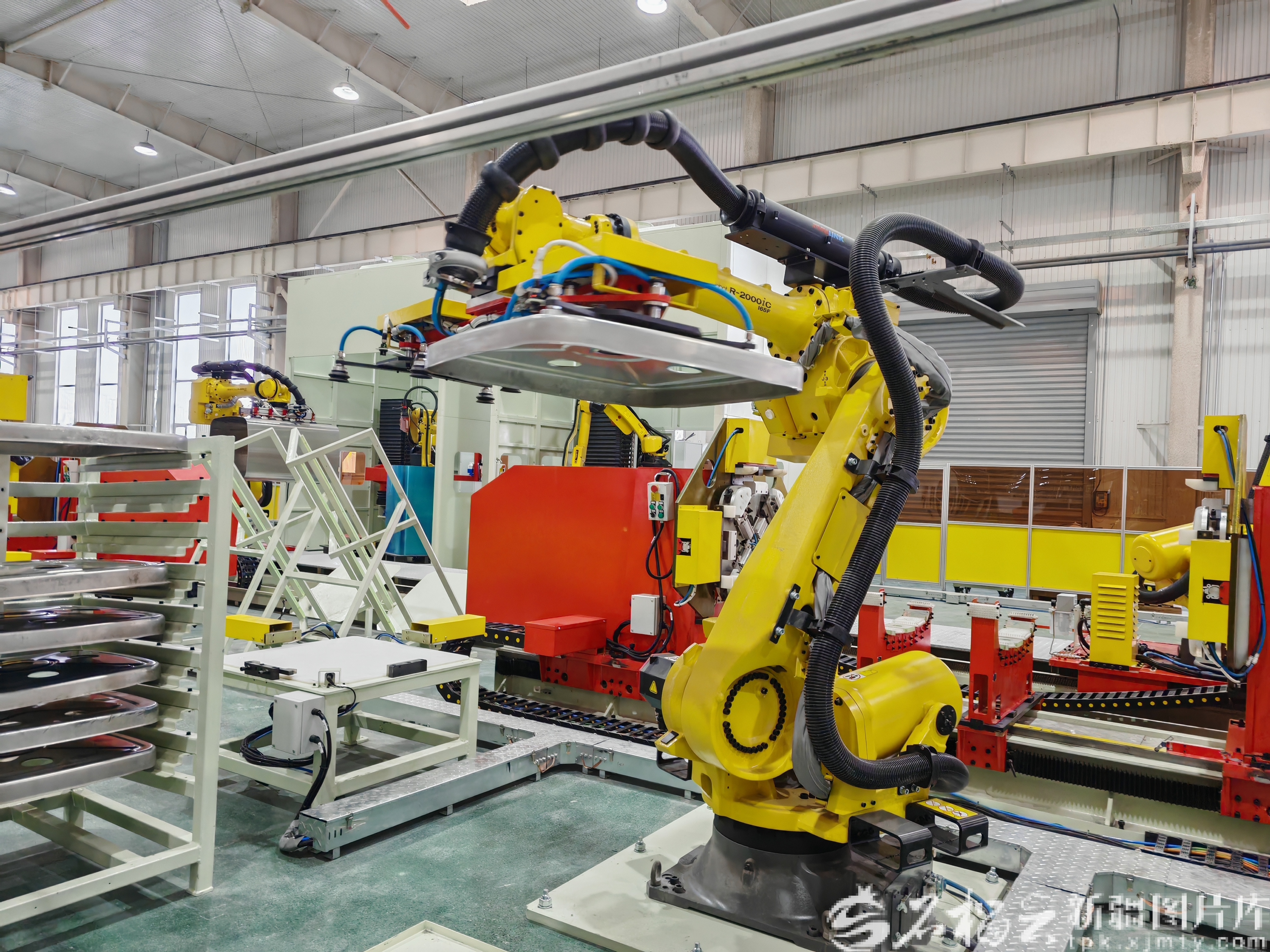 新疆大道实业投资有限公司,冲压模具共享中心油箱储气筒车间,自动化设备在作业。天山网-新疆日报记者 郭宏磊摄