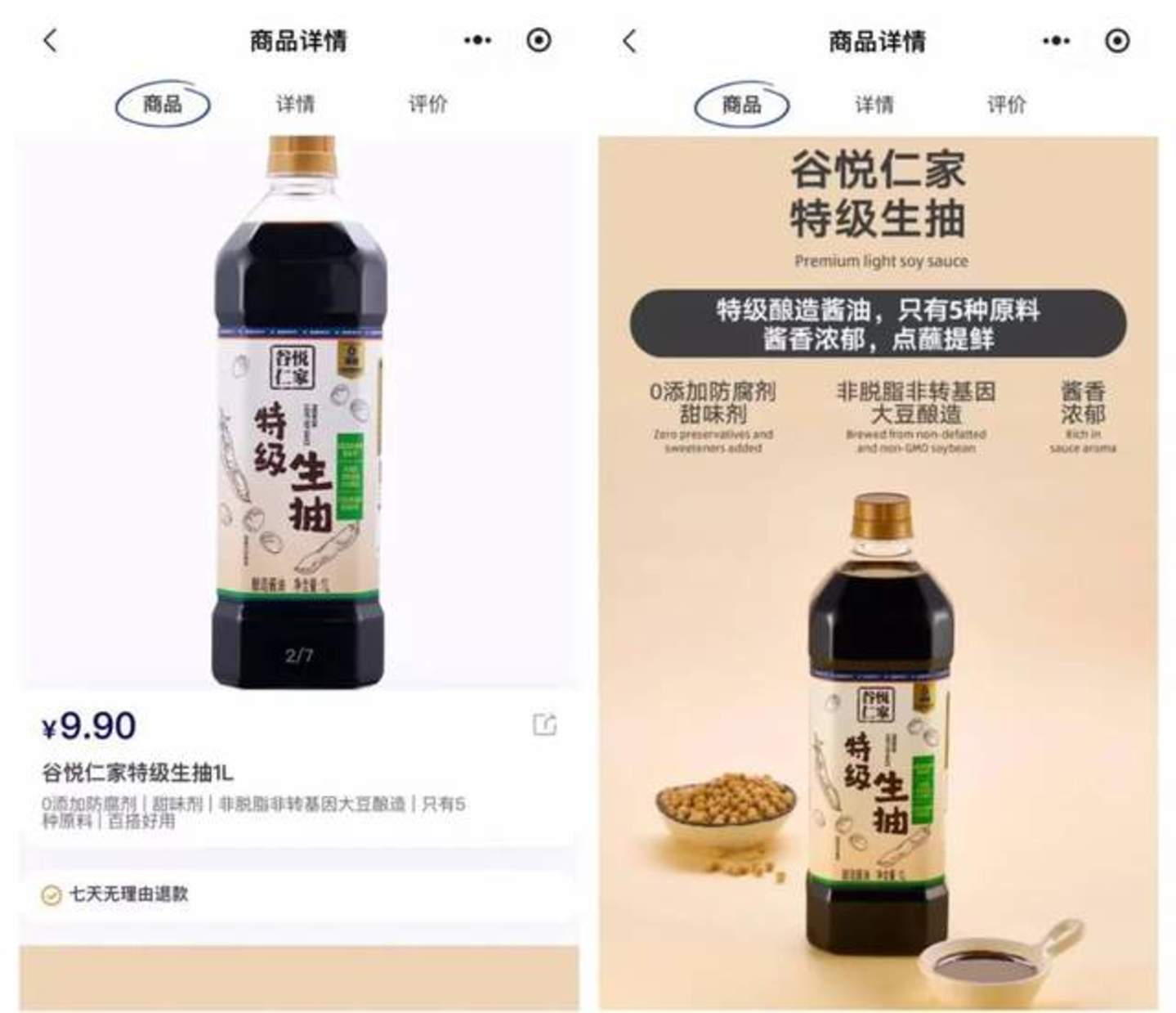 以一款9.9元奥乐齐自牌谷悦仁家1升装特级酱油为例,生产商是大牌海天酱油,工厂直采竞标,是适配上海口味的零添加防腐剂、甜味剂的生抽。