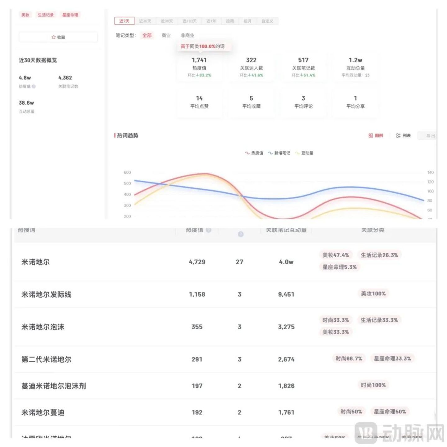 以米诺地尔这一关键词为例,在小红书平台上过去7天关联达人就超300余人,形成了超500篇的笔记数,互动量破万。如果将时间跨度拉长到过去一个月,关联笔记数更是超4300篇,互动总量近40万。通过持续的认知教育,目标群体非但没有病耻感,反而以正向态度面对病症,并以分享的方式与面临同样困扰的群体互动,形成了正向反馈机制。即便是米诺地尔这样一个药物名词,在品牌的精心耕耘下,也已经融入了年轻群体的生活之中。