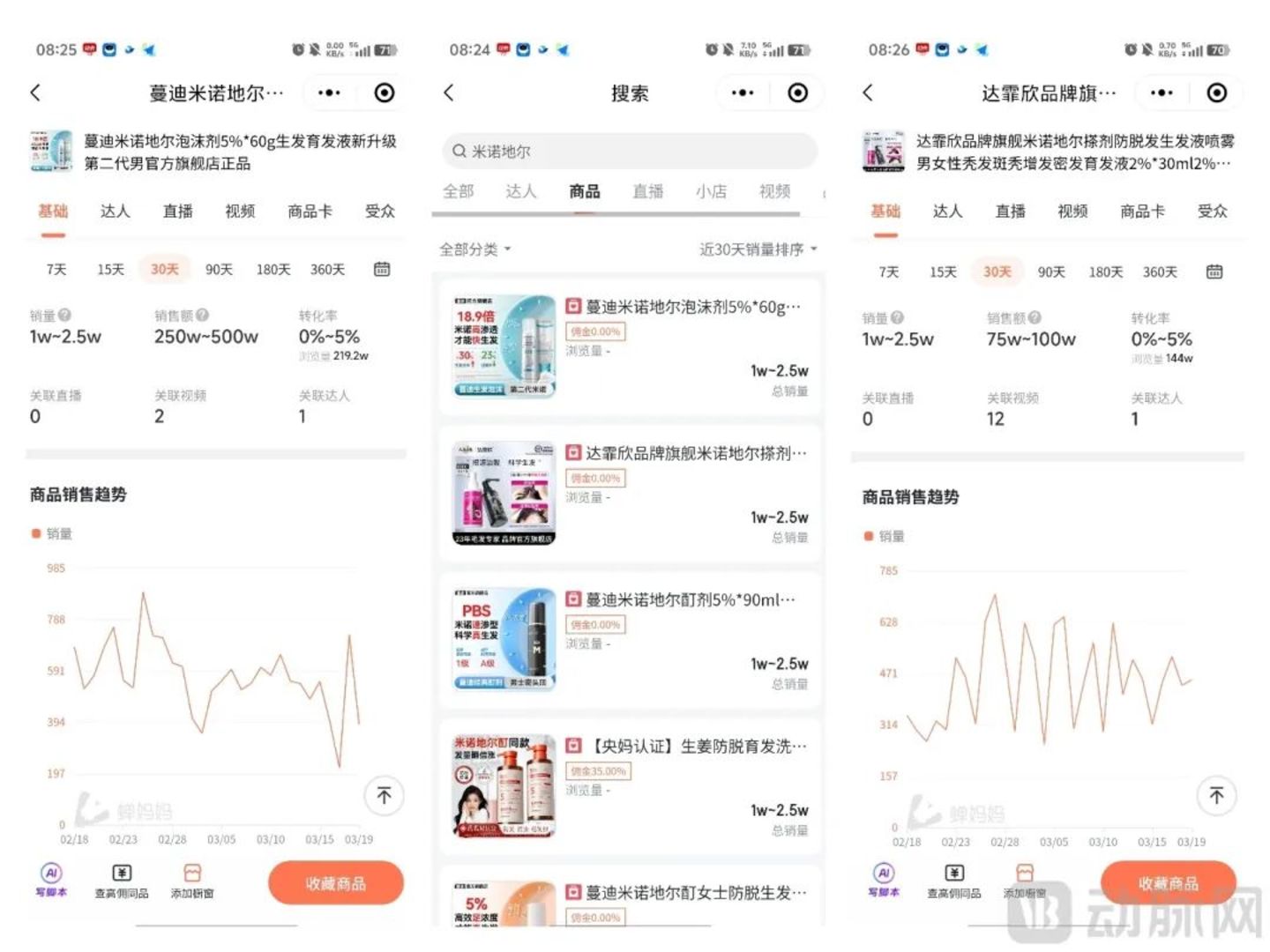 米诺地尔产品在抖音销售情况,图源蝉妈妈