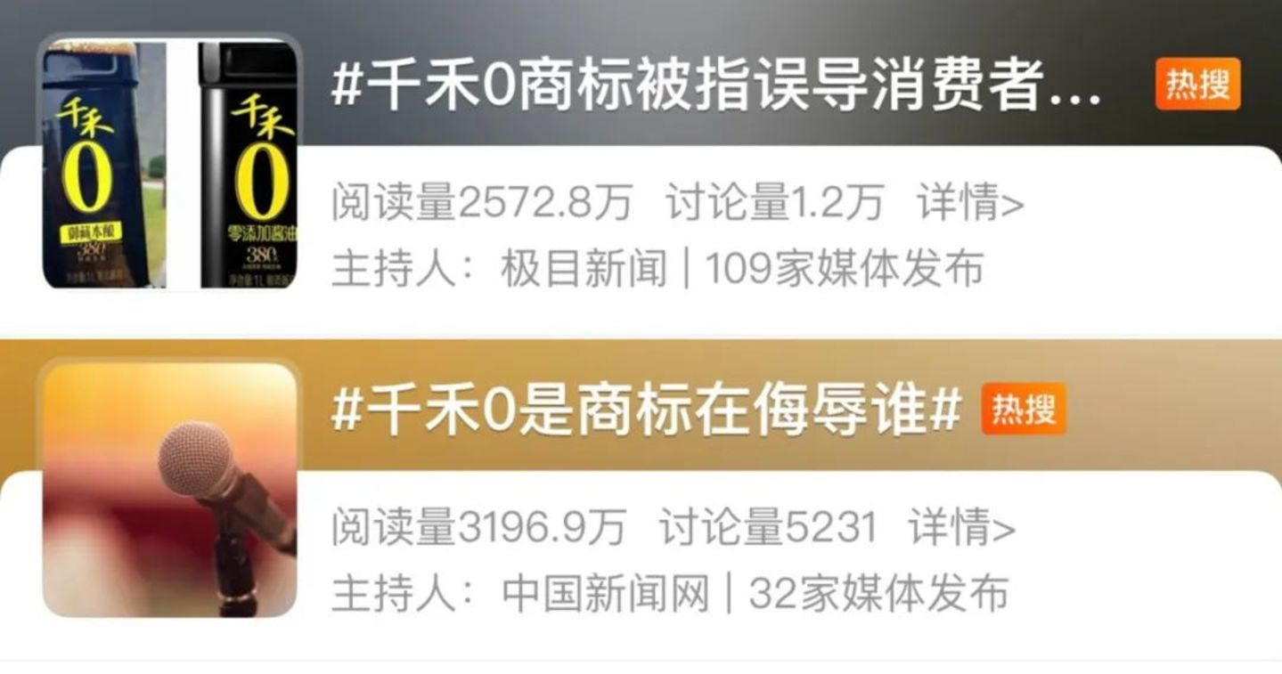 然而,在舆论发酵的近十天里,千禾的股价一度连跌五天。微博上,令公众群情激昂的两条似乎要将千禾钉上历史耻辱柱的热搜,总阅读量也已经超过5000万了。