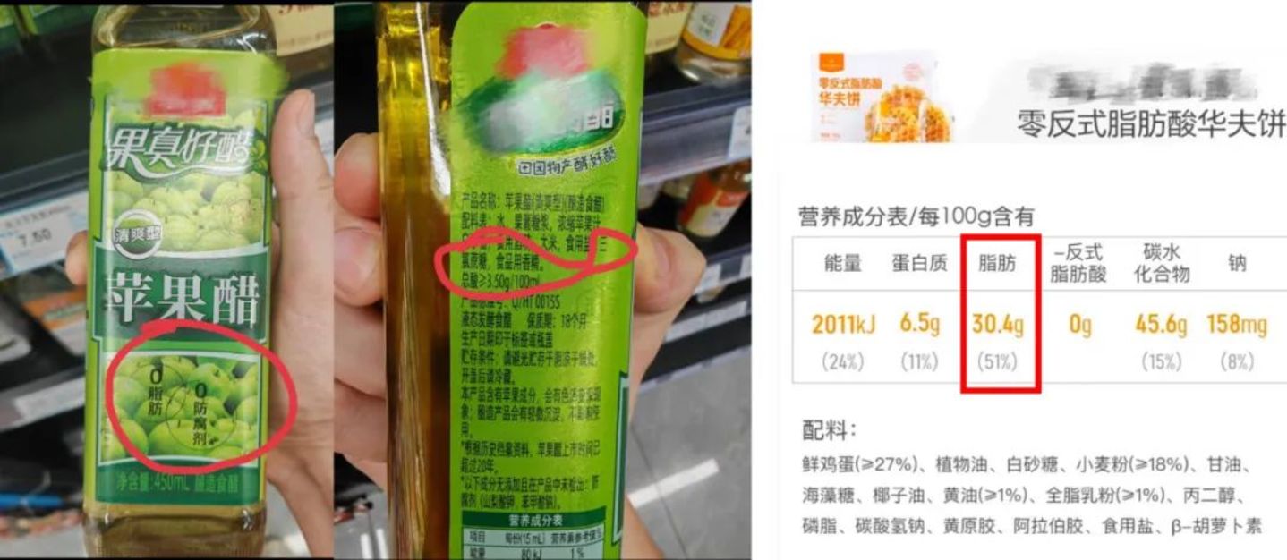 「0脂肪」是加了糖的,「0胆固醇」是本身就没有胆固醇的,「0反式脂肪」是本身脂肪含量就不低的。