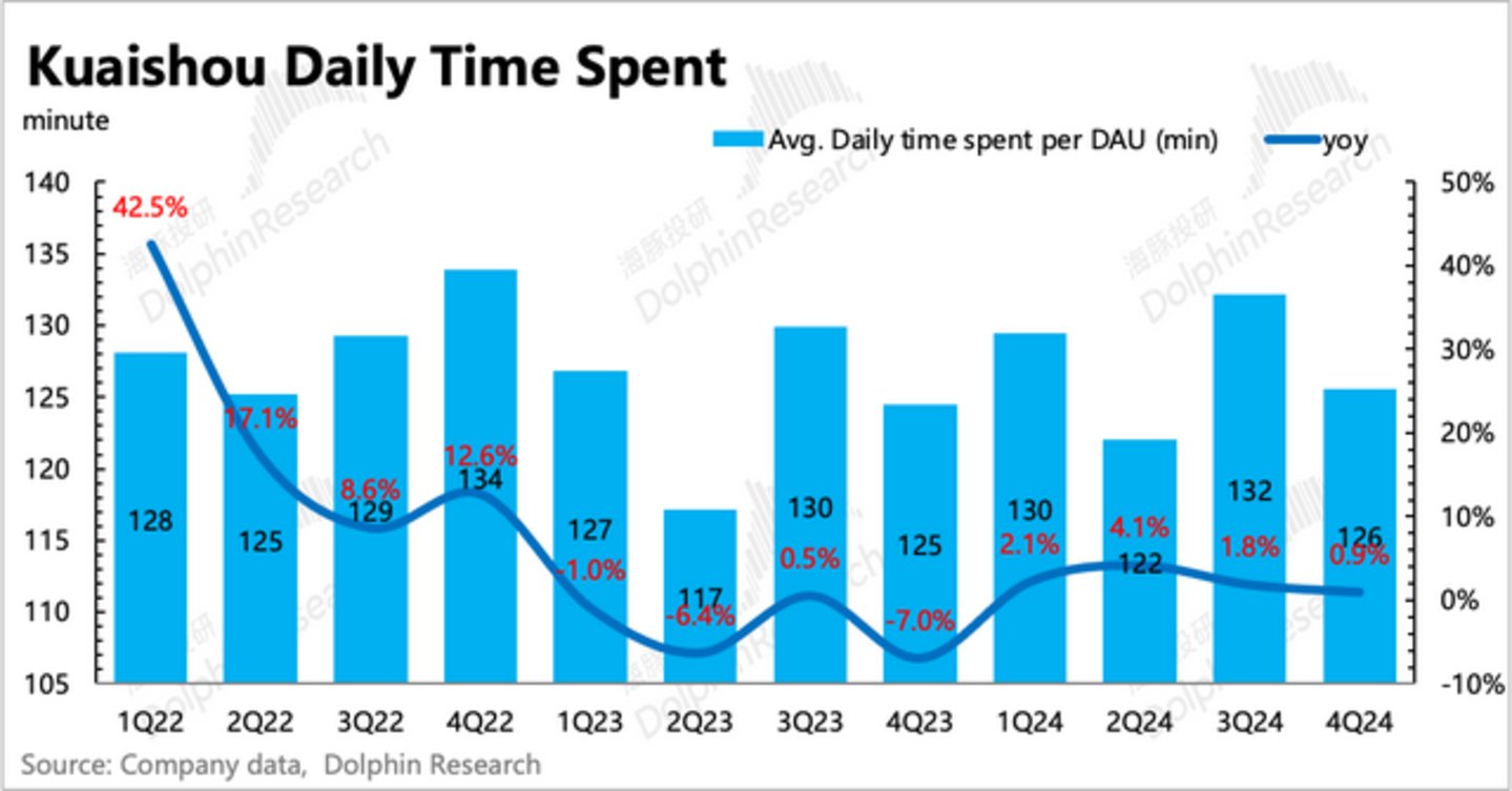 1)日均时长126分钟/天,同比仅增加1分钟;