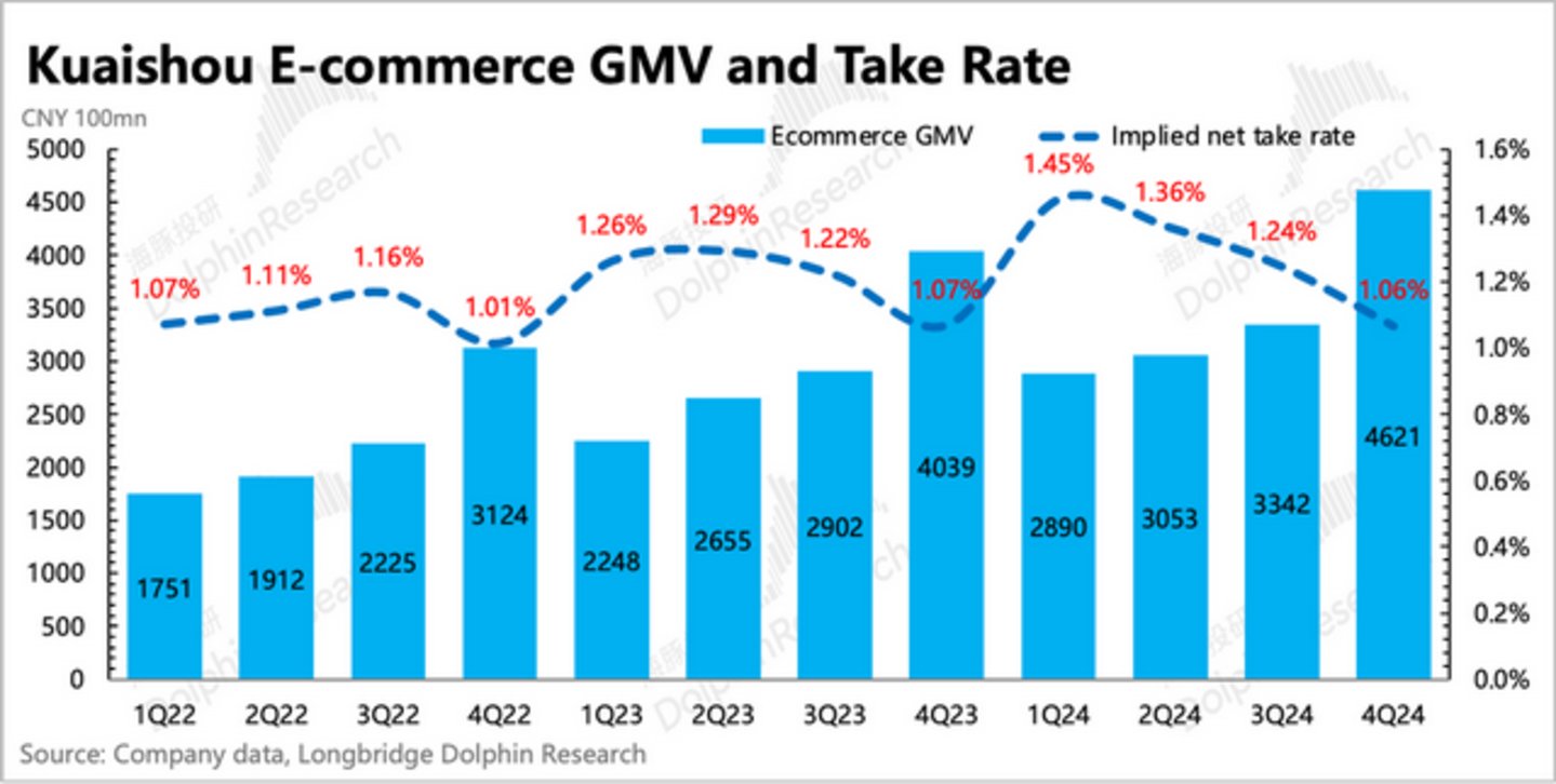 2. 佣金率后续提升逻辑减弱:上半年,快手的电商佣金率同比前一年均有提升。但三季度开始,就明显感到吃力了,四季度佣金率1.06%更是同比去年略微下滑了。