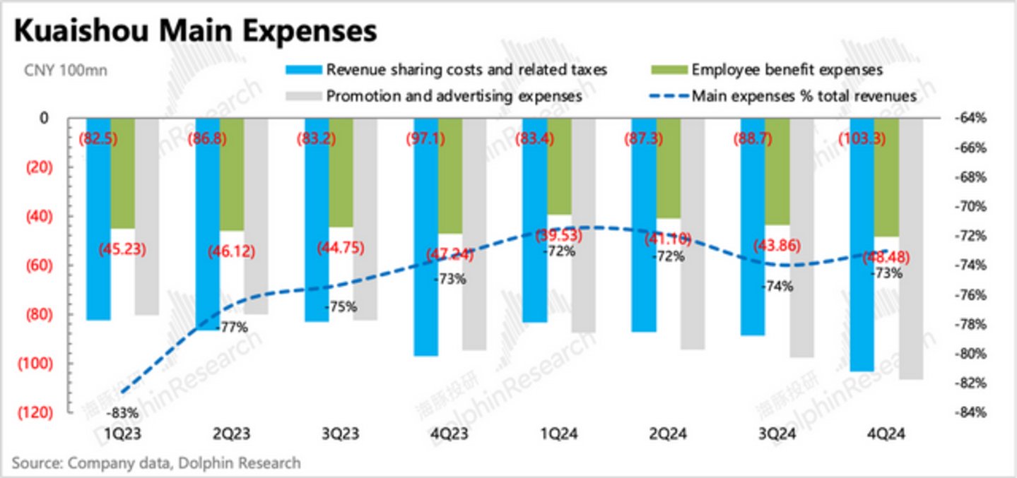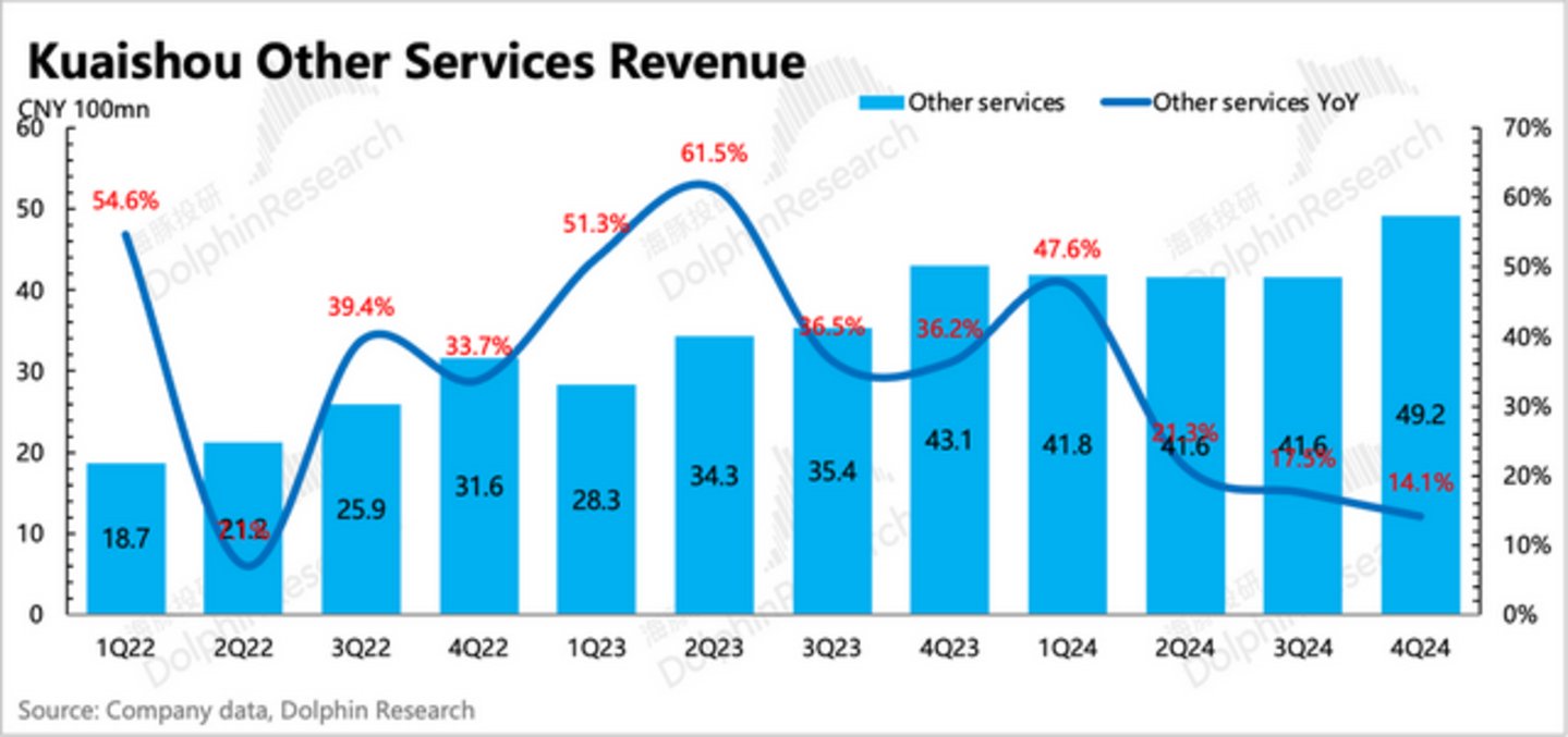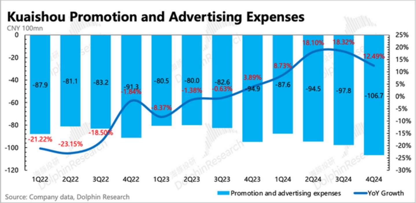 海豚君粗略拆分来看,电商广告跟随GMV的变化,增速相比Q3略微放缓至14%,外循环广告也从近25%降至15%左右,主要是靠短剧、游戏等带动。