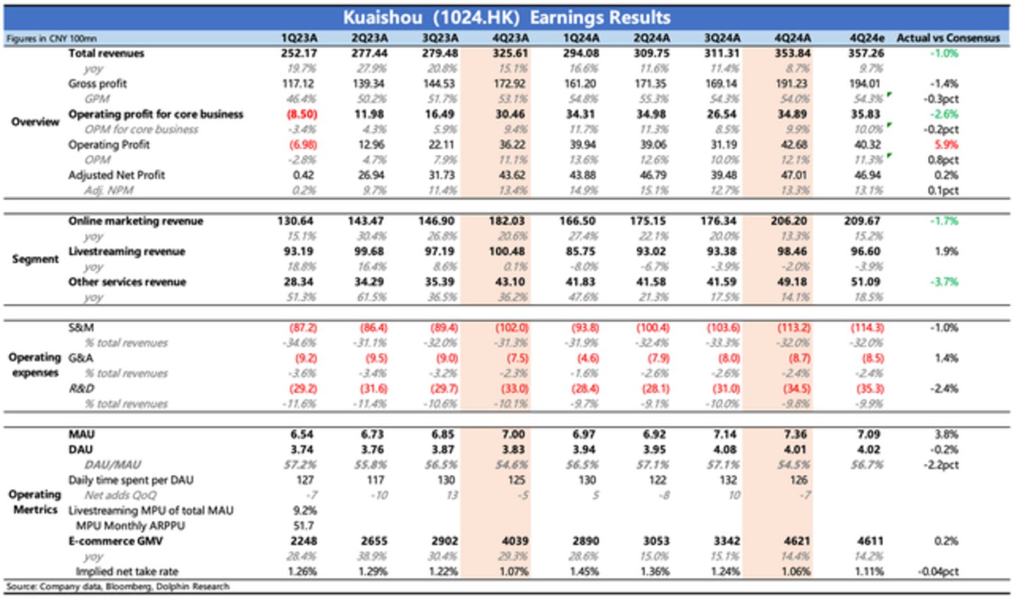 简而言之,估值的空间,全看AI情绪。稍后的电话会可以关注下管理层对今年业务展望如何,包括AI带来的一些业务变化(开源、节流),如果展望积极、口吻乐观,那么不排除会打消资金(南下资金、对冲资金居多)的一些顾虑,在后续科技情绪转好时,短期内继续对快手的“低估值”和“AI属性”保持兴趣。
