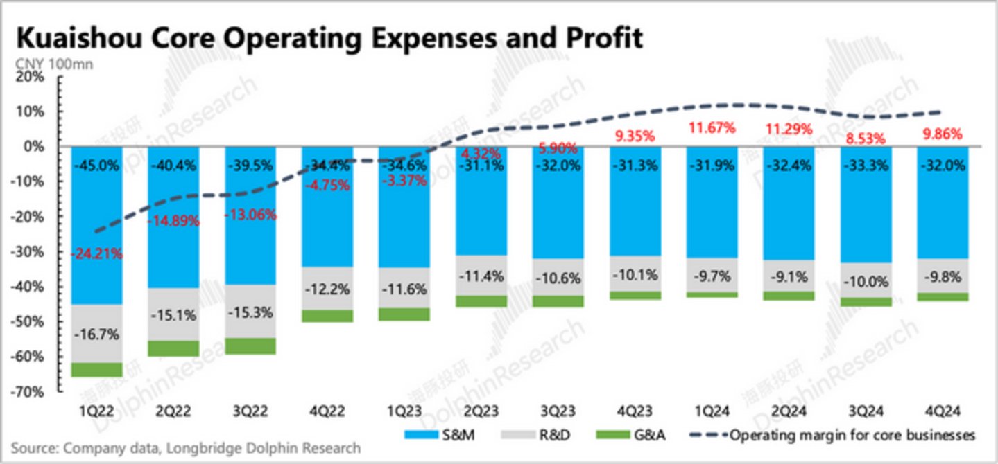 海豚君粗略拆分来看,电商广告跟随GMV的变化,增速相比Q3略微放缓至14%,外循环广告也从近25%降至15%左右,主要是靠新增量的短剧、游戏等带动。从公司的运营细节上看,全自动投放+UAX广告系统完善了商家的投流服务,进而带来商家更多的营销预算。