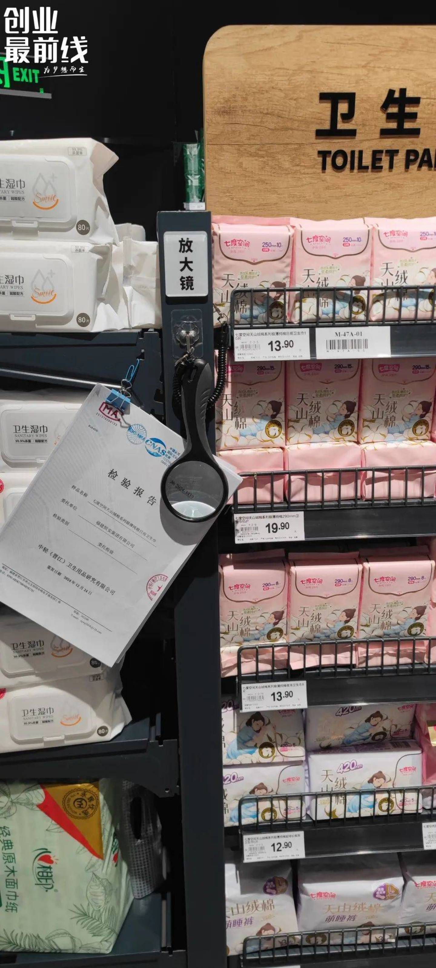 “冰冻食品处增加了手套、果蔬区供挑选产品增加的一次性手套、家居用品区贴心打印的拖鞋尺码对照表、卫生用品区张贴着产品检测报告等人性化细节确实很贴心,我们准备回去也在商超内增加些类似的标语。”泽林表示。