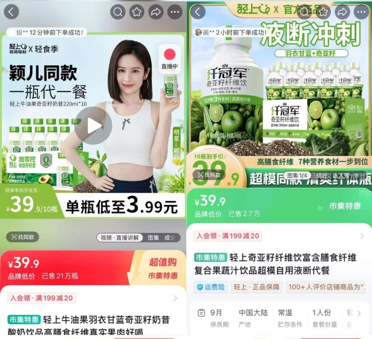一个典型的例子是,2023年抖音饮料销售额排名第五、2024年排名第一的品牌——“轻上”。
