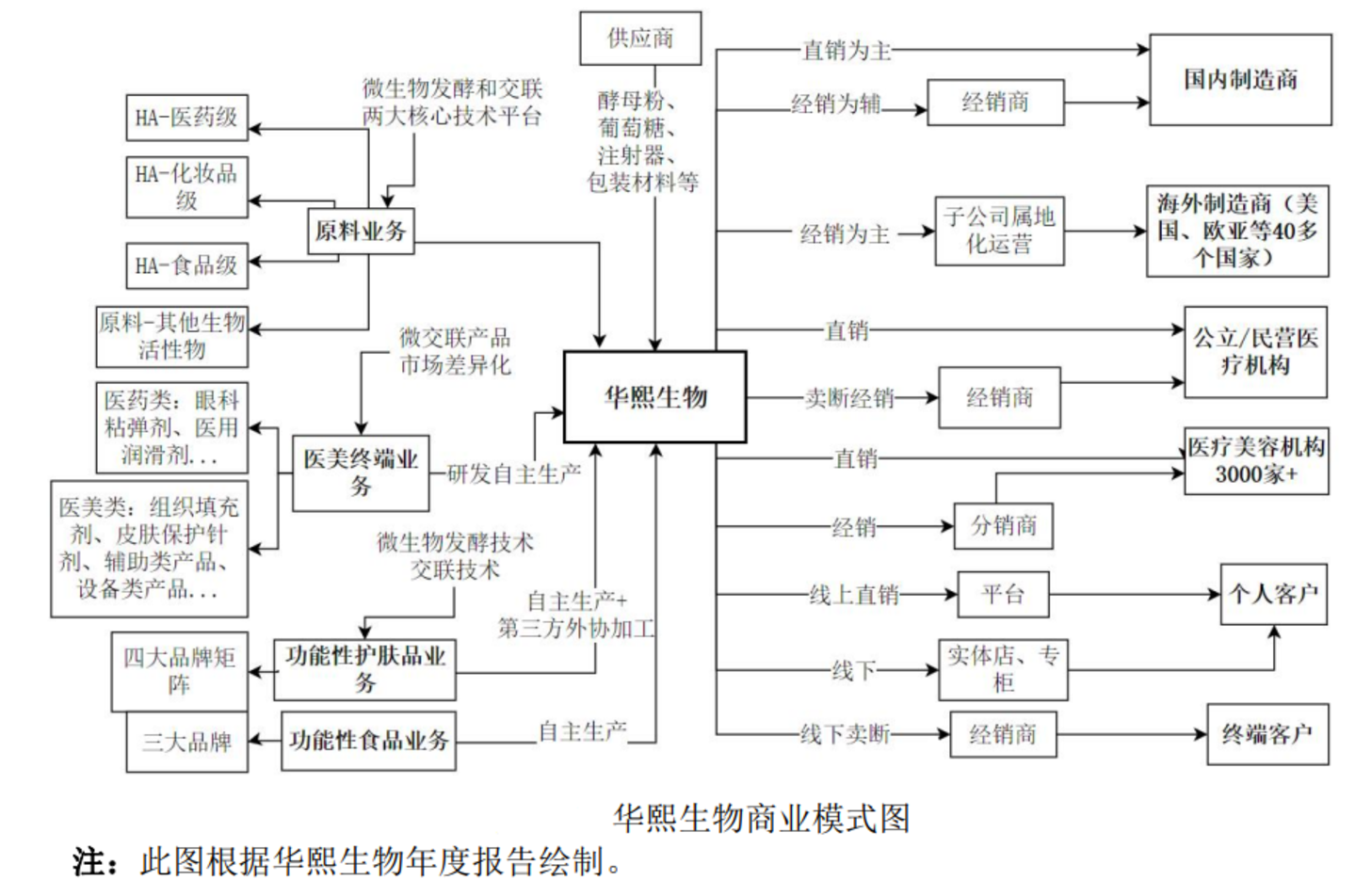 以上是爱美客和华熙生物的商业模式,可以看到其渠道是以直销和自营为主,这大大提升了厂家对流通环节的把控能力。