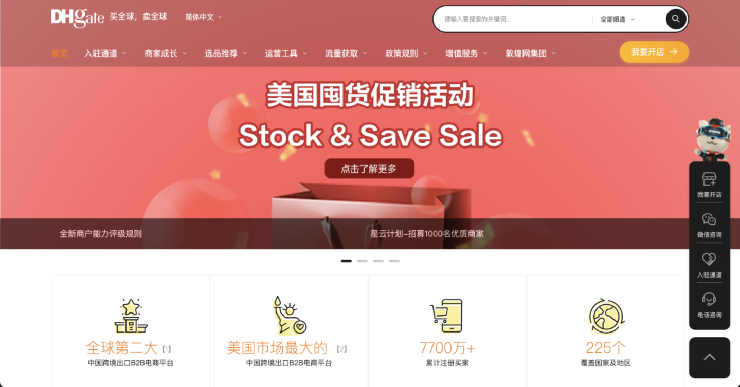 关于敦煌网,恐怕很多年轻的中国网友都不太熟悉,甚至可能会以为是敦煌文旅或者景区做的旅游网站。实际上,敦煌网是由前卓越网CEO王树彤于2004年创立的B2B跨境电商平台,截至目前已经拥有254万供应商、5960万买家,业务覆盖225个国家,物流线路100多条,海外仓14个。更形象地说,敦煌网就是海外跨境版的“1688”。