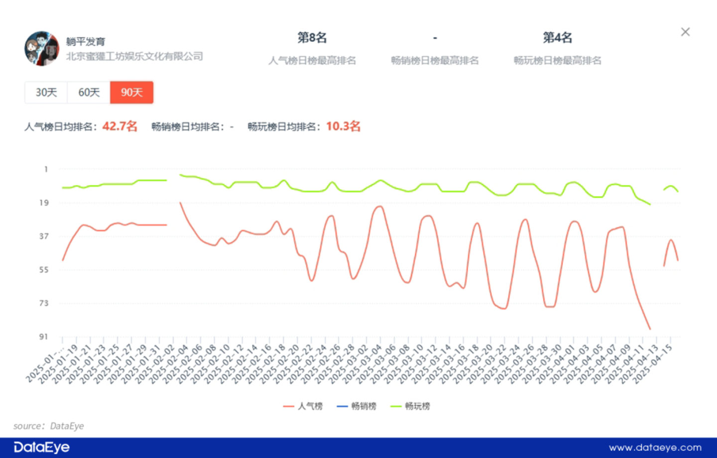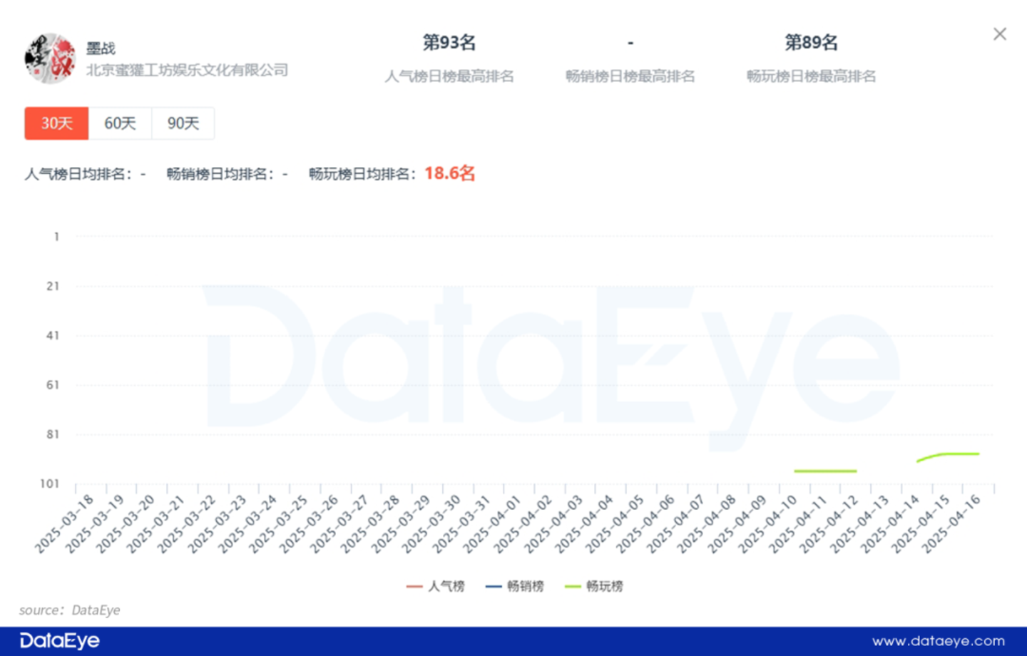 不过,《墨战》目前整体市场表现并不算十分突出,整体攀升相对缓慢: