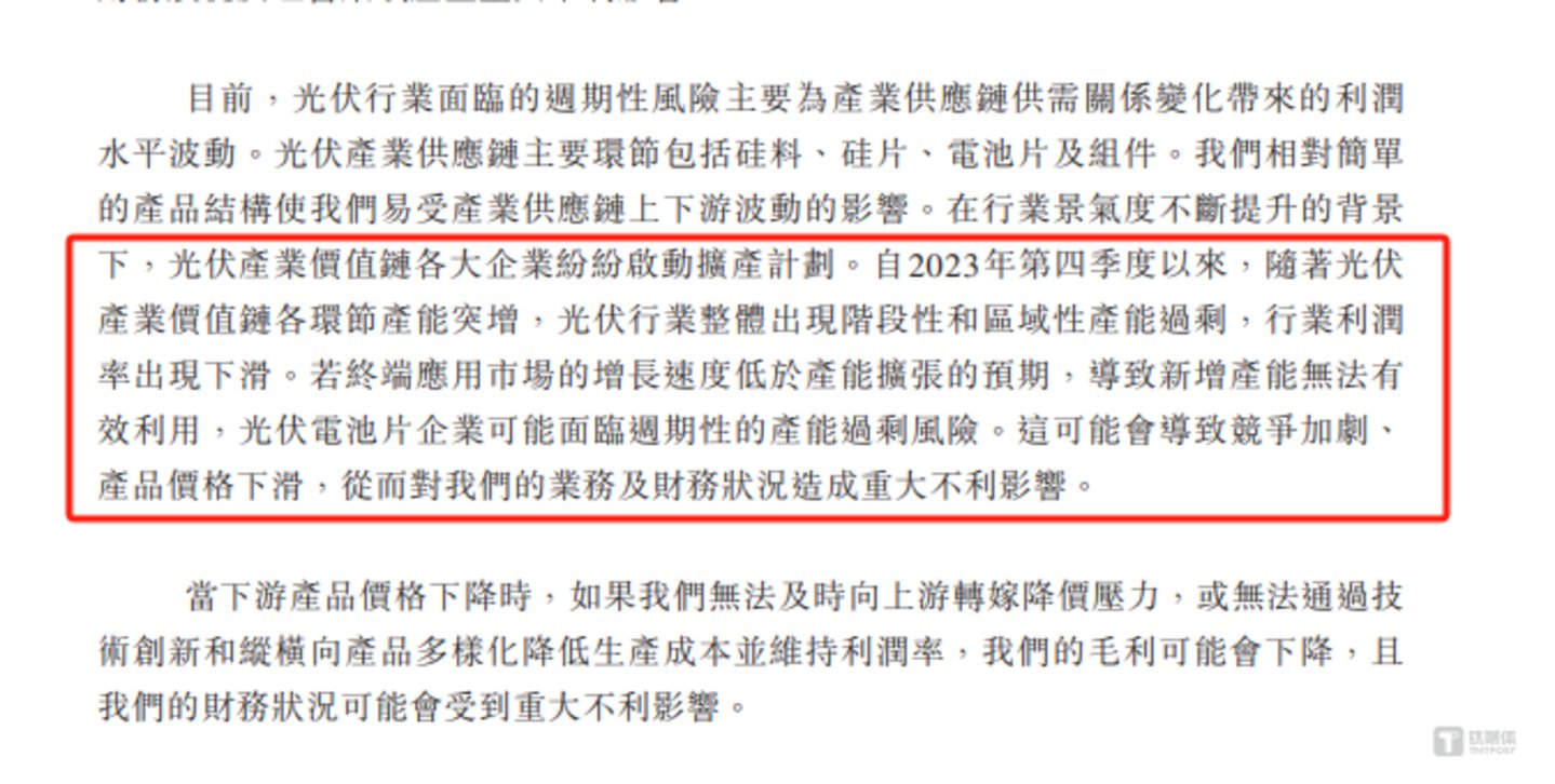 另外,中润光能在申报稿中自述,自2023年第四季度以來,随着光伏产业价值链各环节产能突增,光伏行业整体出现阶段性和区域性产能过剩,行业利润率出现下滑。