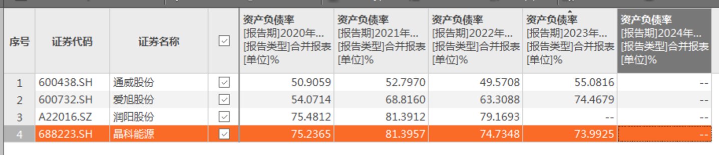 钛媒体APP注意到,无论是创业板IPO还是港股IPO,中润光能均存在一个现象,那就是债务压力大。根据中润光能创业板的申报稿,公司的同行可比公司分别为通威股份、爱旭股份、润阳股份、晶科能源,2020年-2024年,中润光能的资产负债率分别为92.29%、95.56%、79.38%、80.5%、83.7%,而同行可比公司资产负债率的具体情况如下: