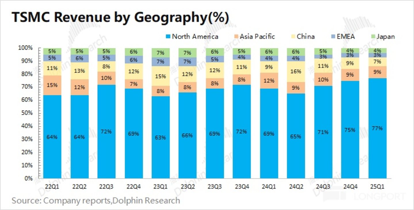 而至于关税影响,对台积电的直接影响相对较小,但如果下游客户承担更多,可能会影响终端市场,从而间接对公司产生影响。而从当前的市场需求以及客户情况看,公司经营面仍相对稳健,公司也维持了此前的全年收入目标。