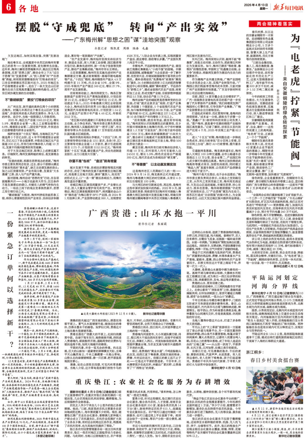 地处粤东北、全域属原中央苏区的梅州有着自己的思考——发展要突围,首先精神当自强。近年来,梅州以解放思想凝聚共识,跳出区位等具象困境,反思“思想之困”,推动全市上下从“过日子思维”向“发展思维”、从“投入思维”向“产出思维”跨越,将有限资源精准投向“打粮食的项目”,以务实举措激活苏区振兴活力,2025年地区生产总值增速全省第一,走出了一条欠发达山区依靠内生动力实现高质量发展的特色路径,成为广东区域协调发展的生动缩影。