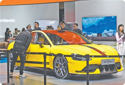 2026年世界移动通信大会期间,参观者在体验小米公司展示的新款电动汽车。